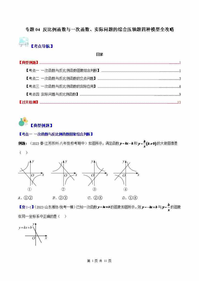 专题04 反比例函数与一次函数、实际问题的综合压轴题四种模型全攻略(原卷版)