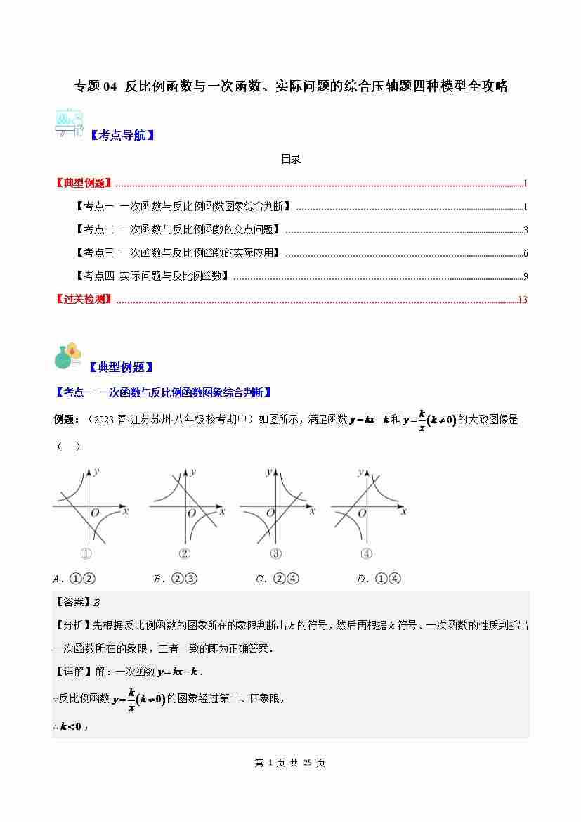 专题04 反比例函数与一次函数、实际问题的综合压轴题四种模型全攻略(解析版)