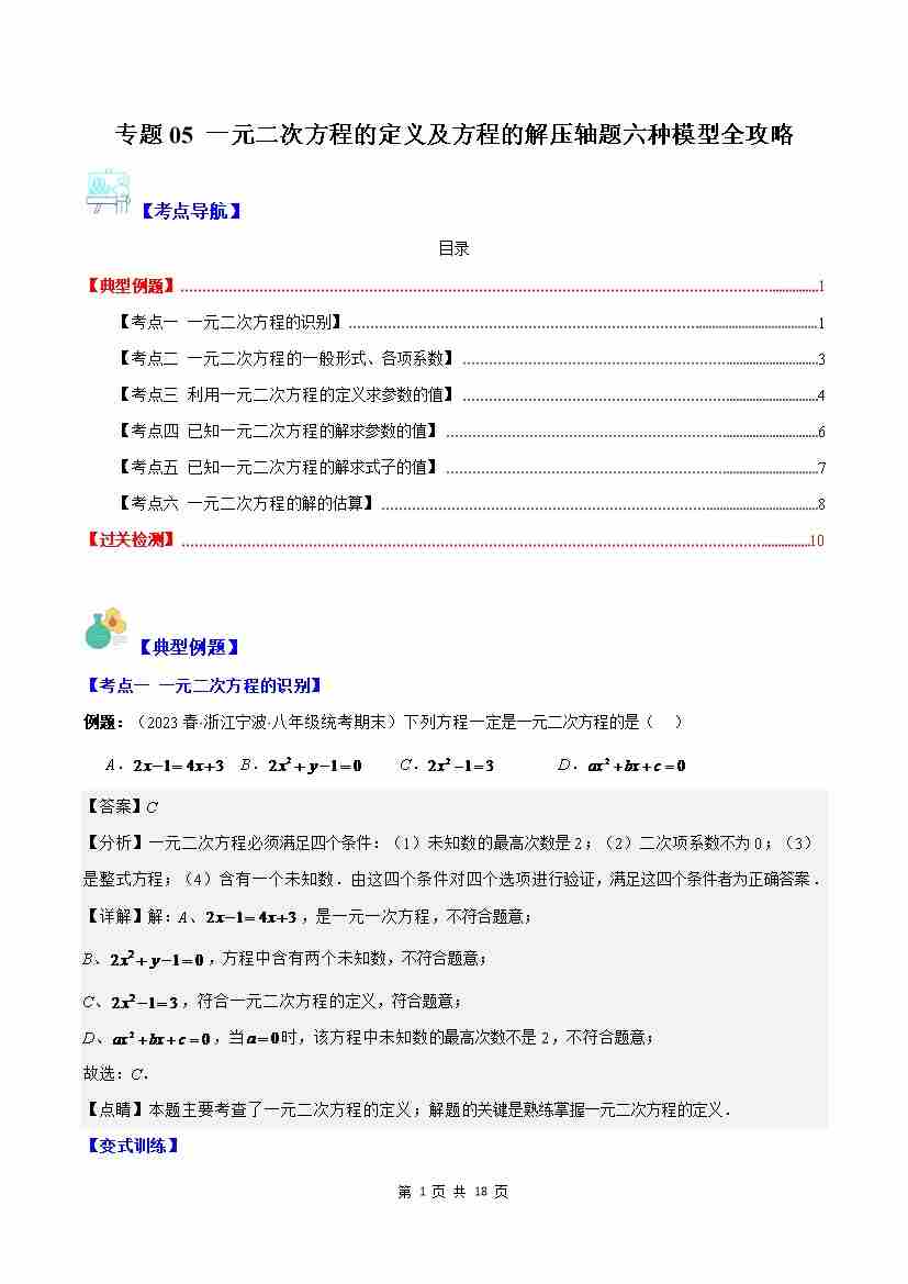 专题05 一元二次方程的定义及方程的解压轴题六种模型全攻略(原卷版)