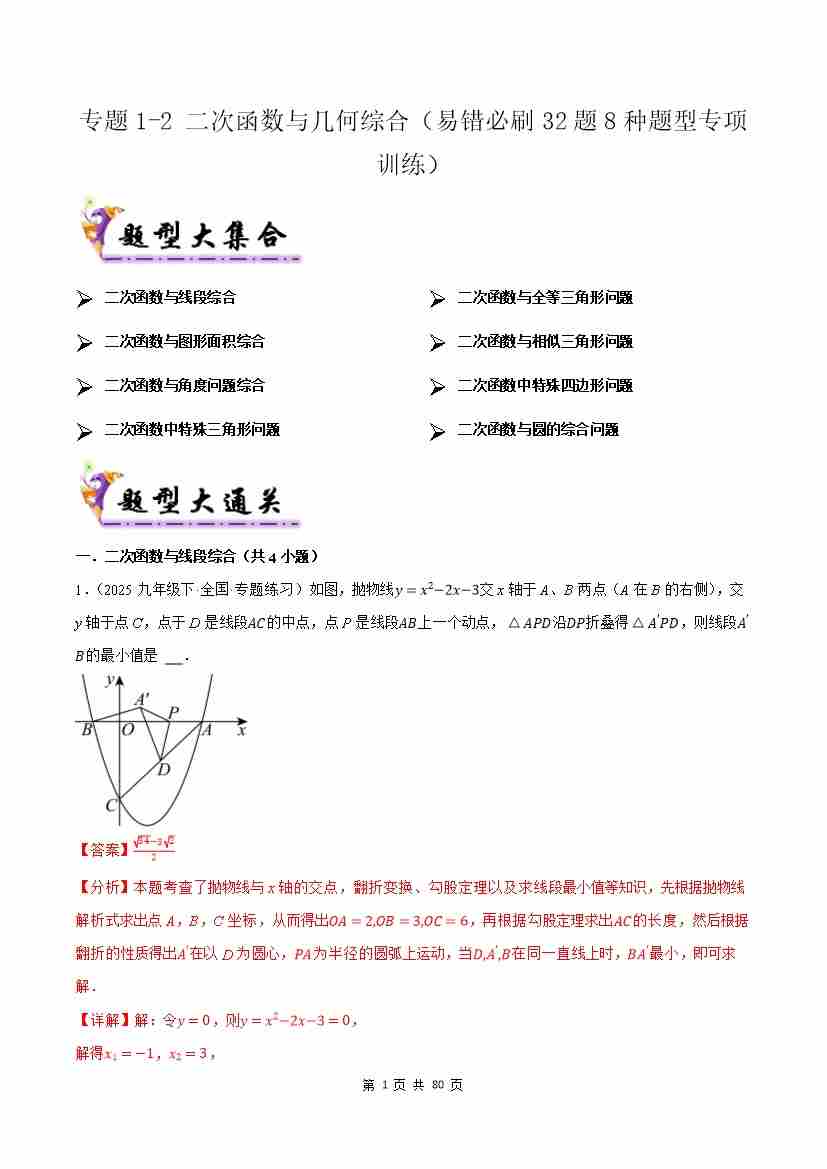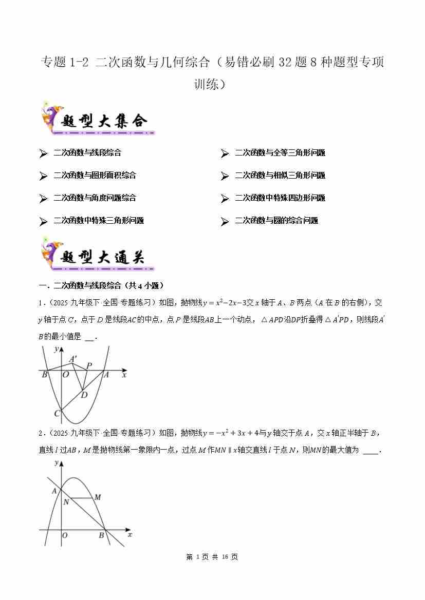 专题1-2二次函数与几何综合(考题猜想32题8种题型)(原题版)