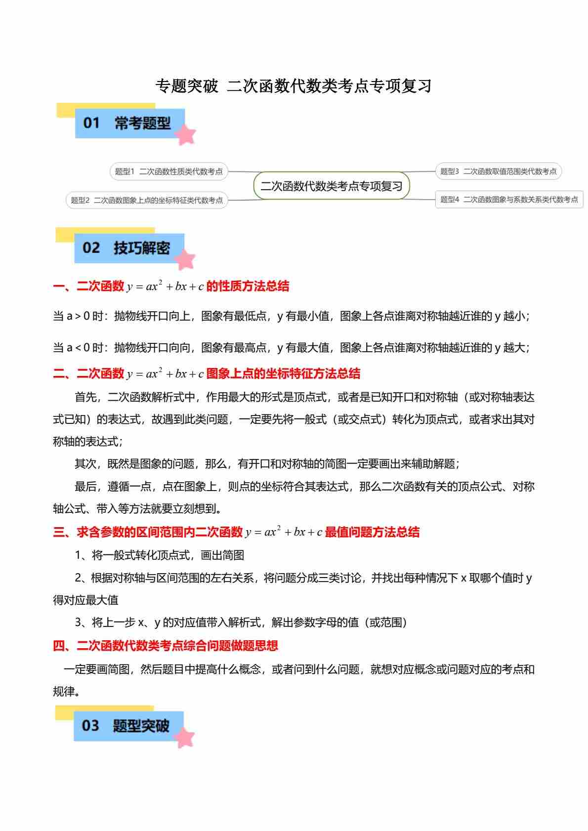 专题突破 二次函数代数类考点专项复习(4大题型)(原卷版)