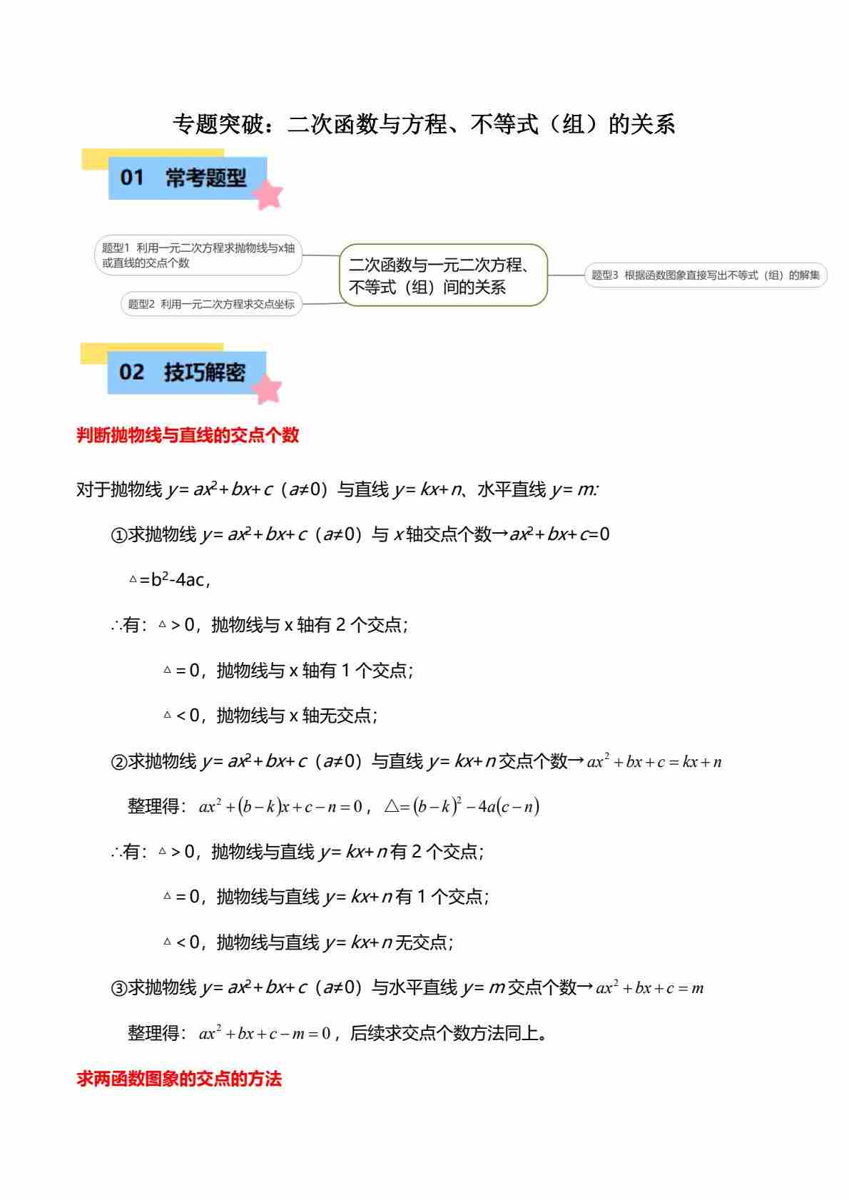 专题突破:二次函数与方程、不等式(组)的关系(3大题型)(原卷版)