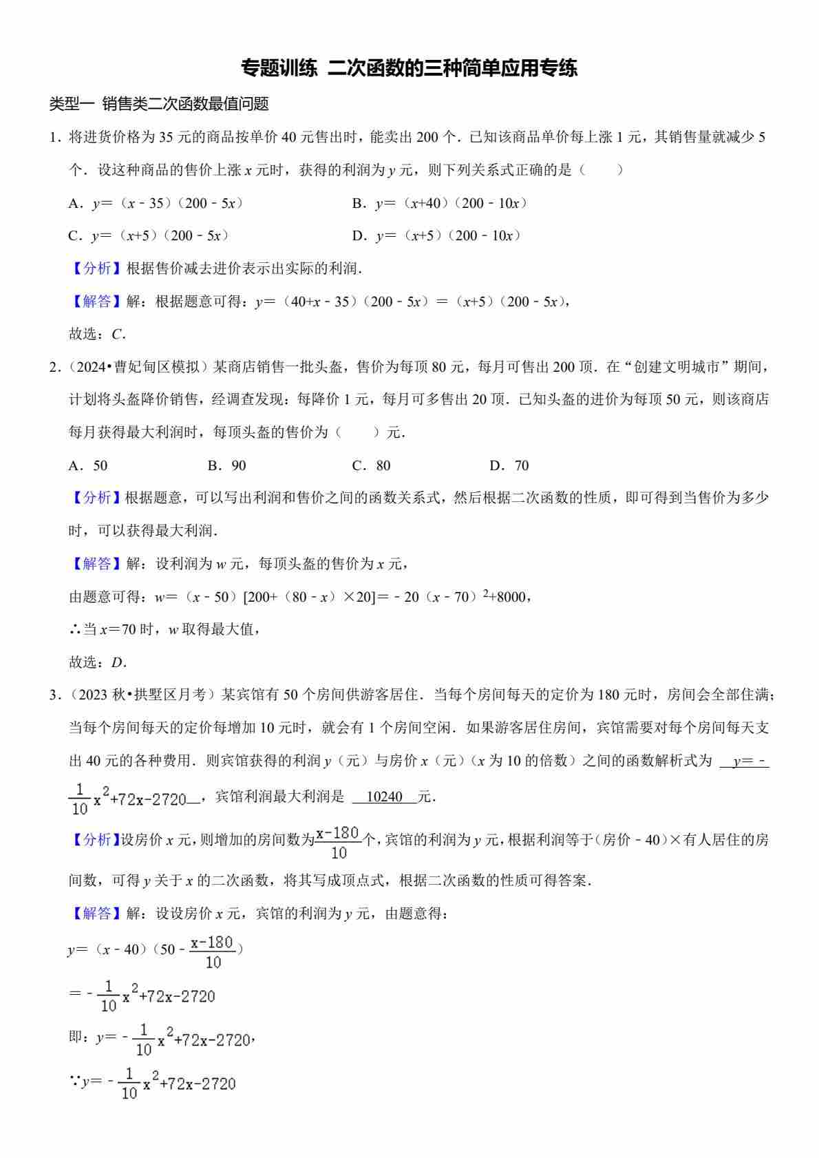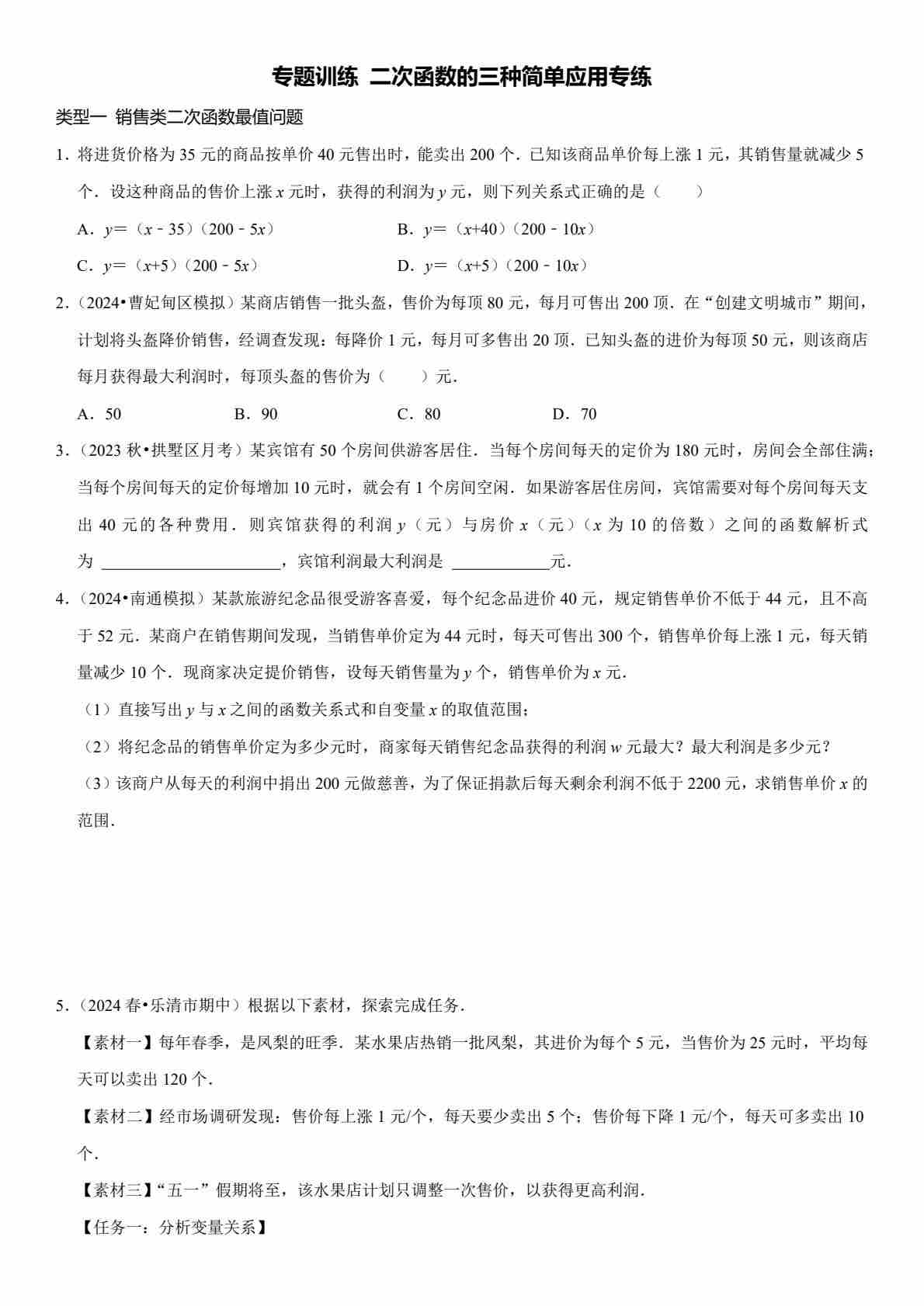 专题训练 二次函数的五种简单应用专练(原卷版)