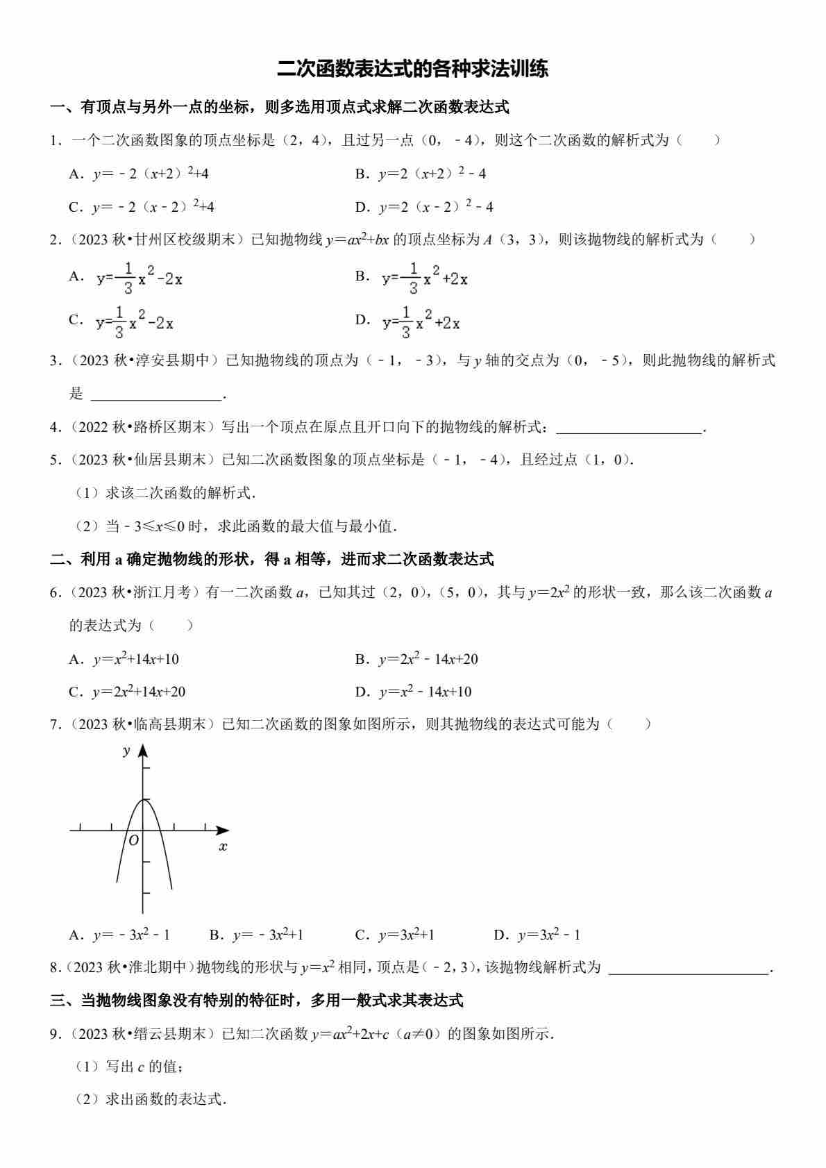 专题训练:二次函数表达式的各种求法训练(原卷版)
