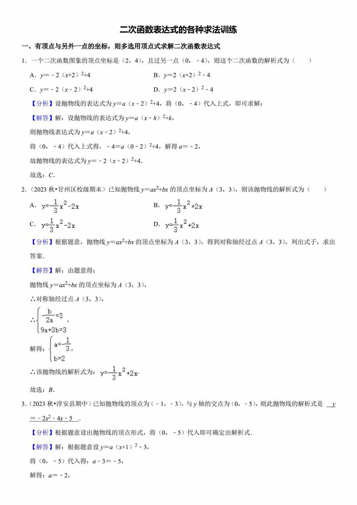 专题训练:二次函数表达式的各种求法训练(解析版)