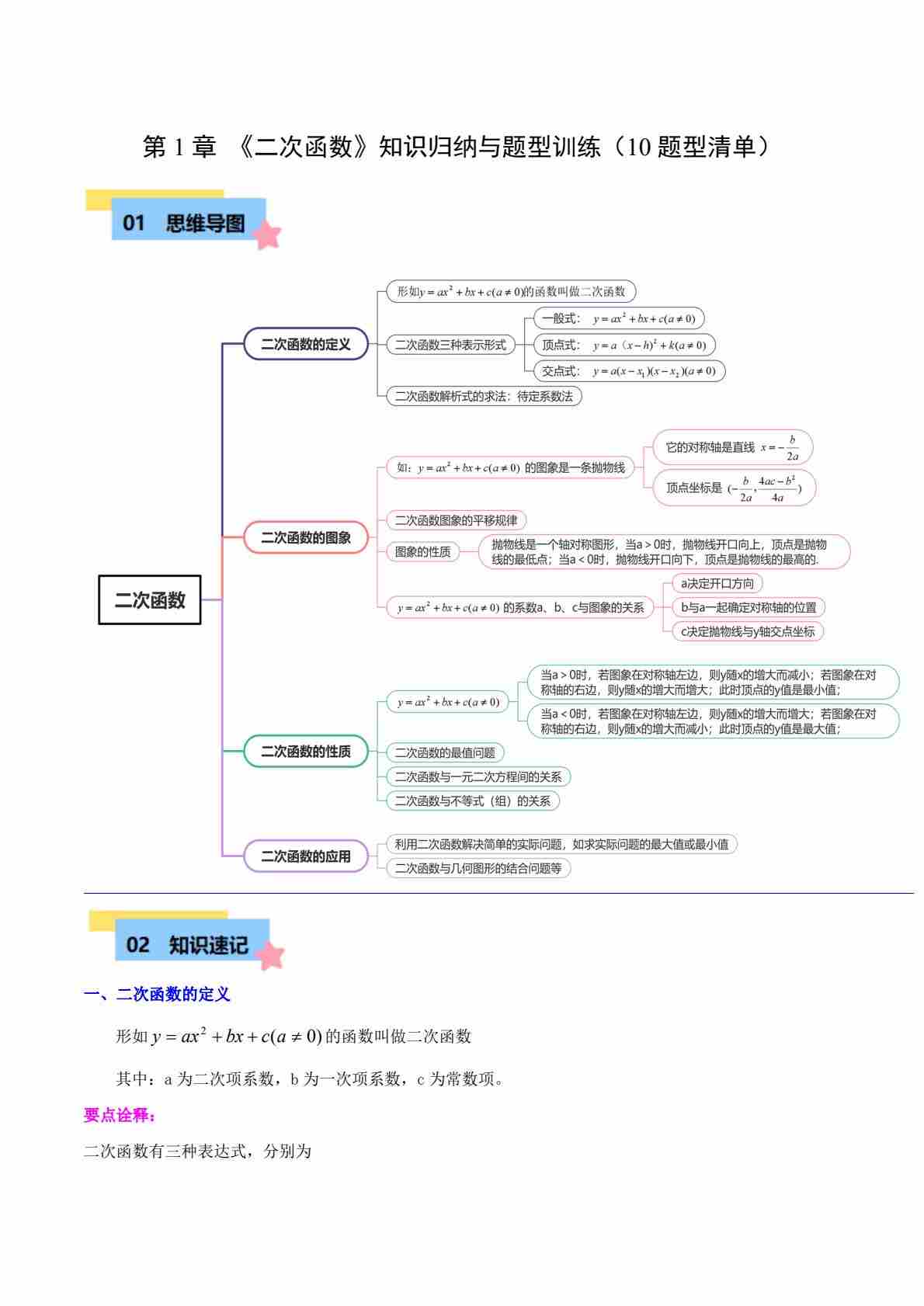 第1章 二次函数知识归纳与题型训练(10类题型清单)(原卷版)