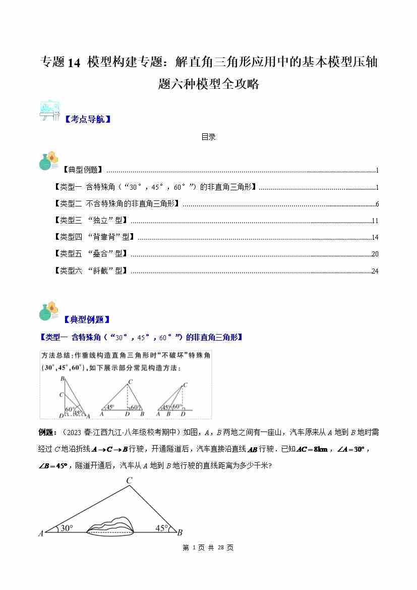 专题14 模型构建专题:解直角三角形应用中的基本模型压轴题六种模型全攻略(原卷版)