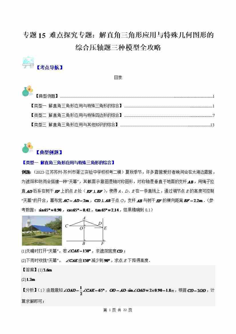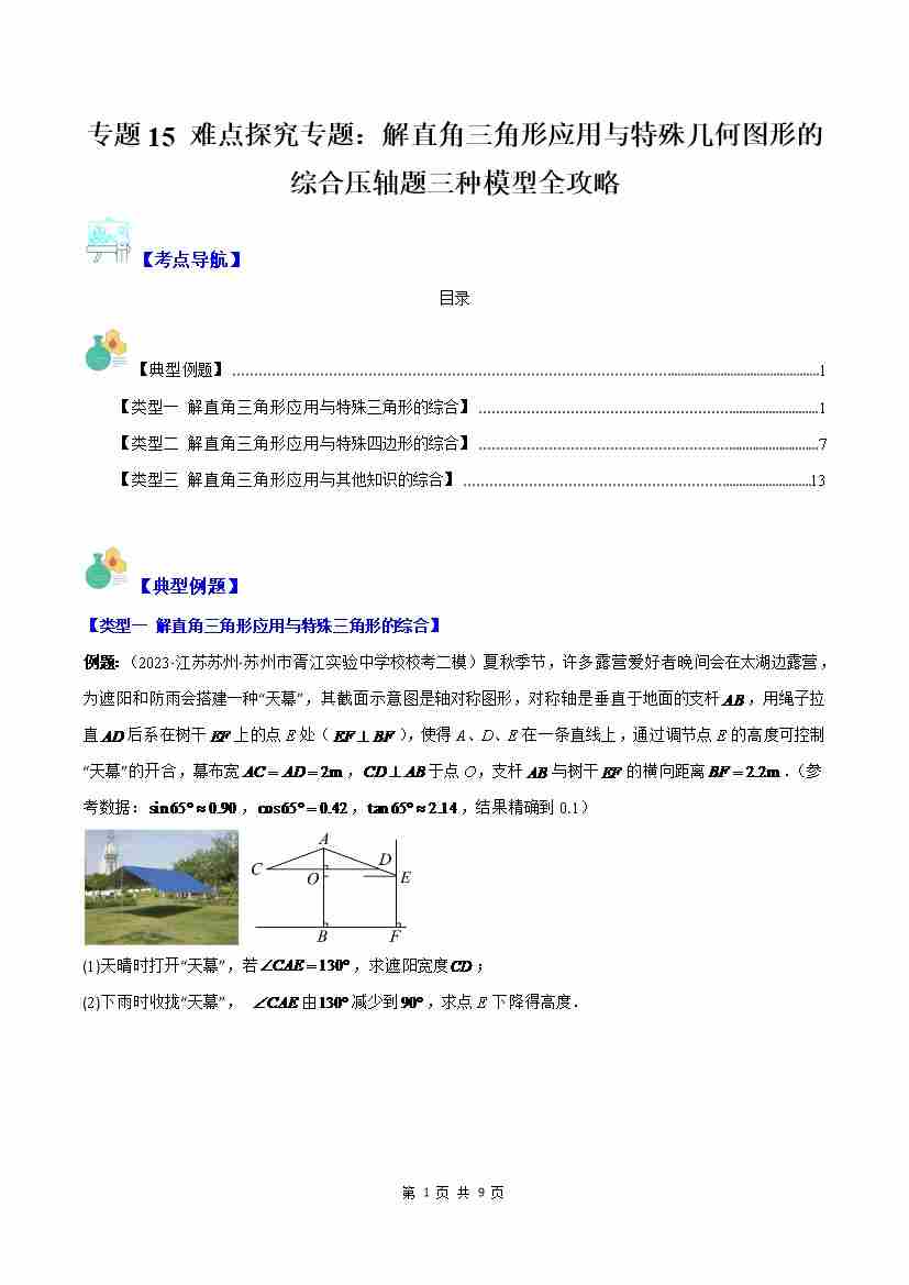 专题15 难点探究专题:解直角三角形应用与特殊几何图形的综合压轴题三种模型全攻略(解析版)
