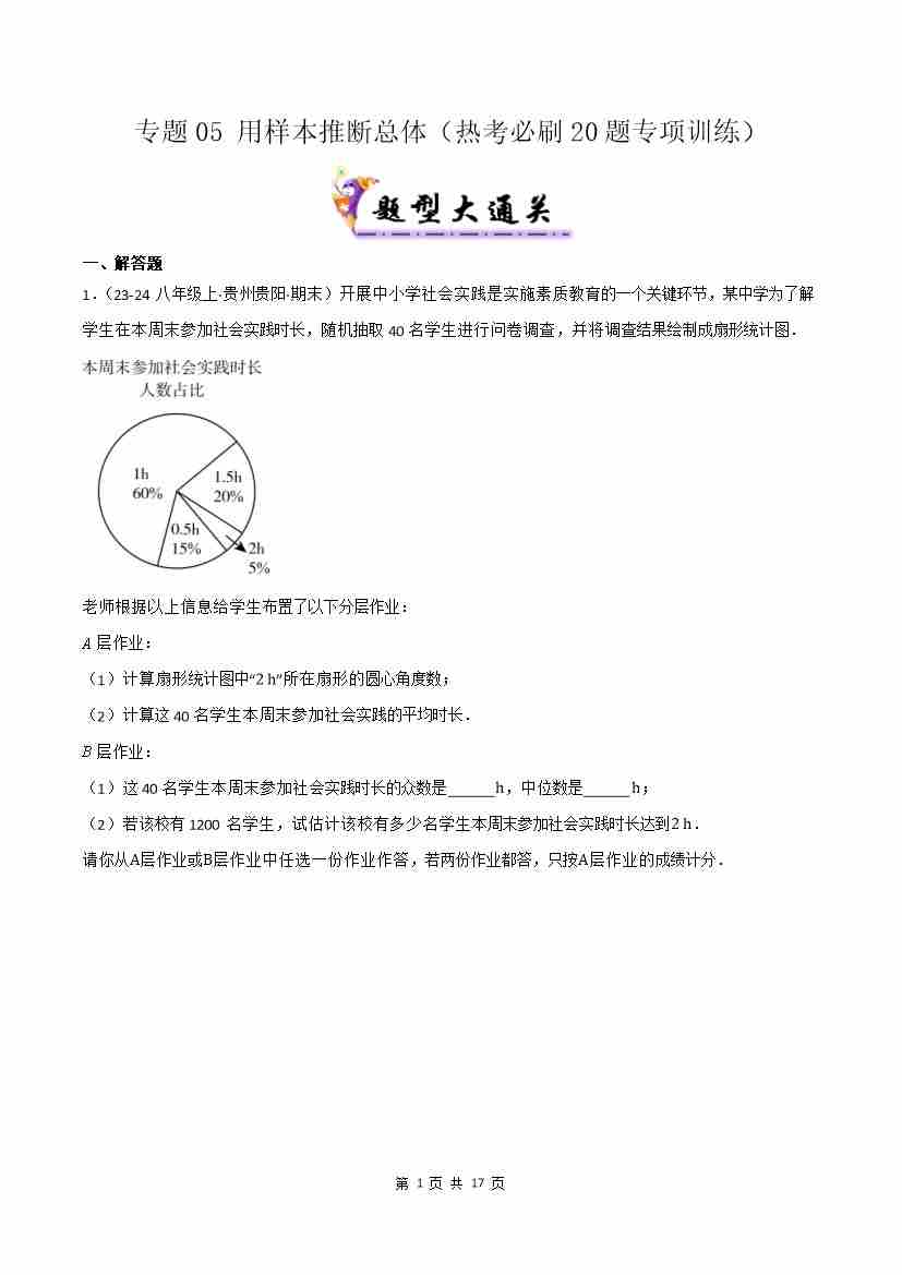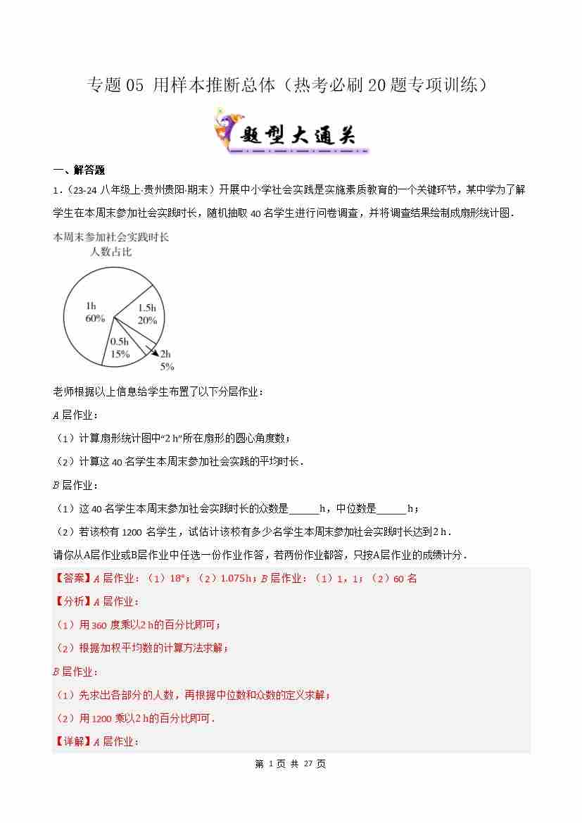 专题05 用样本推断总体(考题猜想,热考必刷20题专项训练)(原卷版)