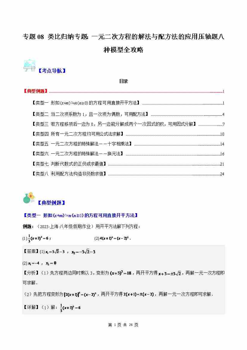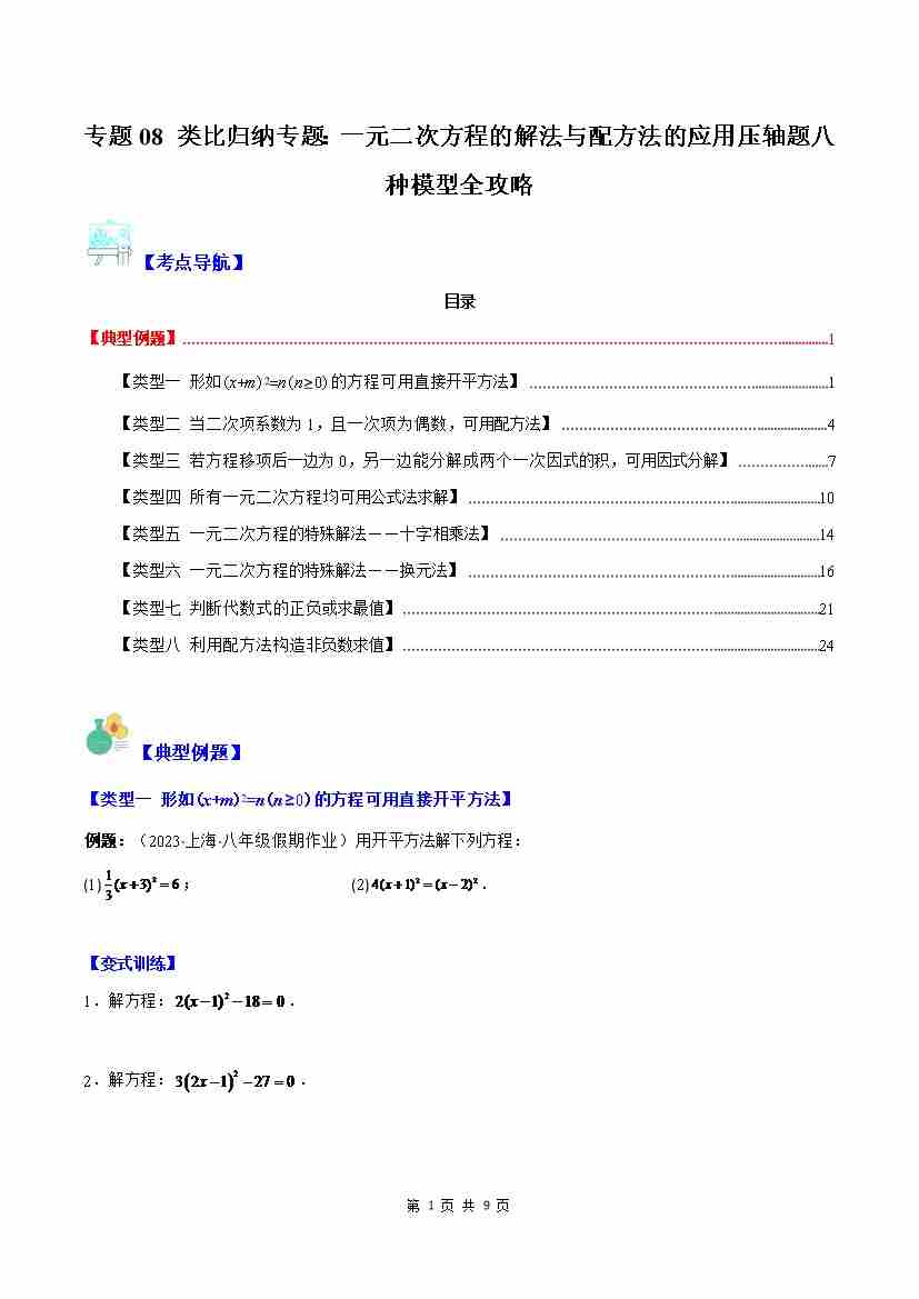 专题08 类比归纳专题:一元二次方程的解法与配方法的应用压轴题八种模型全攻略(原卷版)