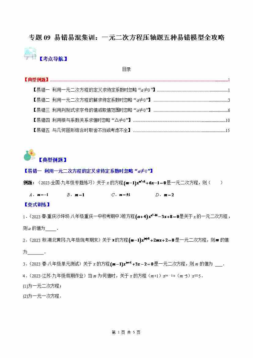 专题09 易错易混集训:一元二次方程压轴题五种易错模型全攻略(原卷版)