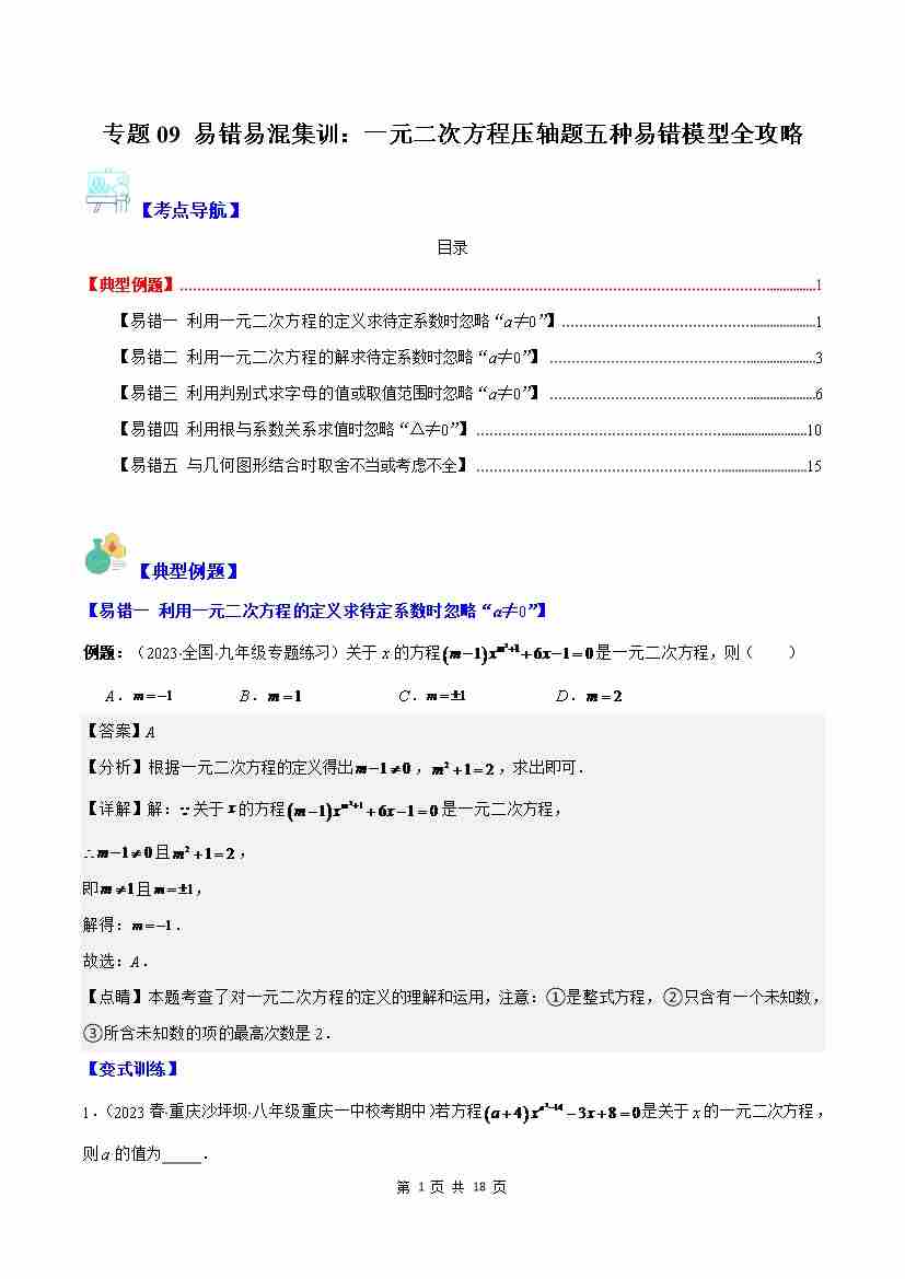 专题09 易错易混集训:一元二次方程压轴题五种易错模型全攻略(解析版)