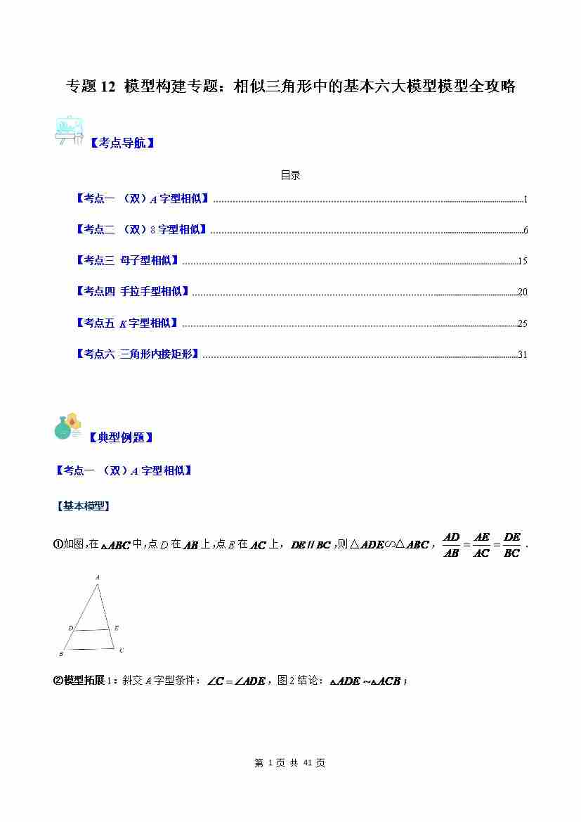 专题12 模型构建专题:相似三角形中的基本六大模型模型全攻略(解析版)