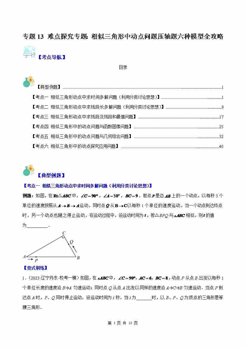 专题13 难点探究专题:相似三角形中动点问题压轴题六种模型全攻略(原卷版)
