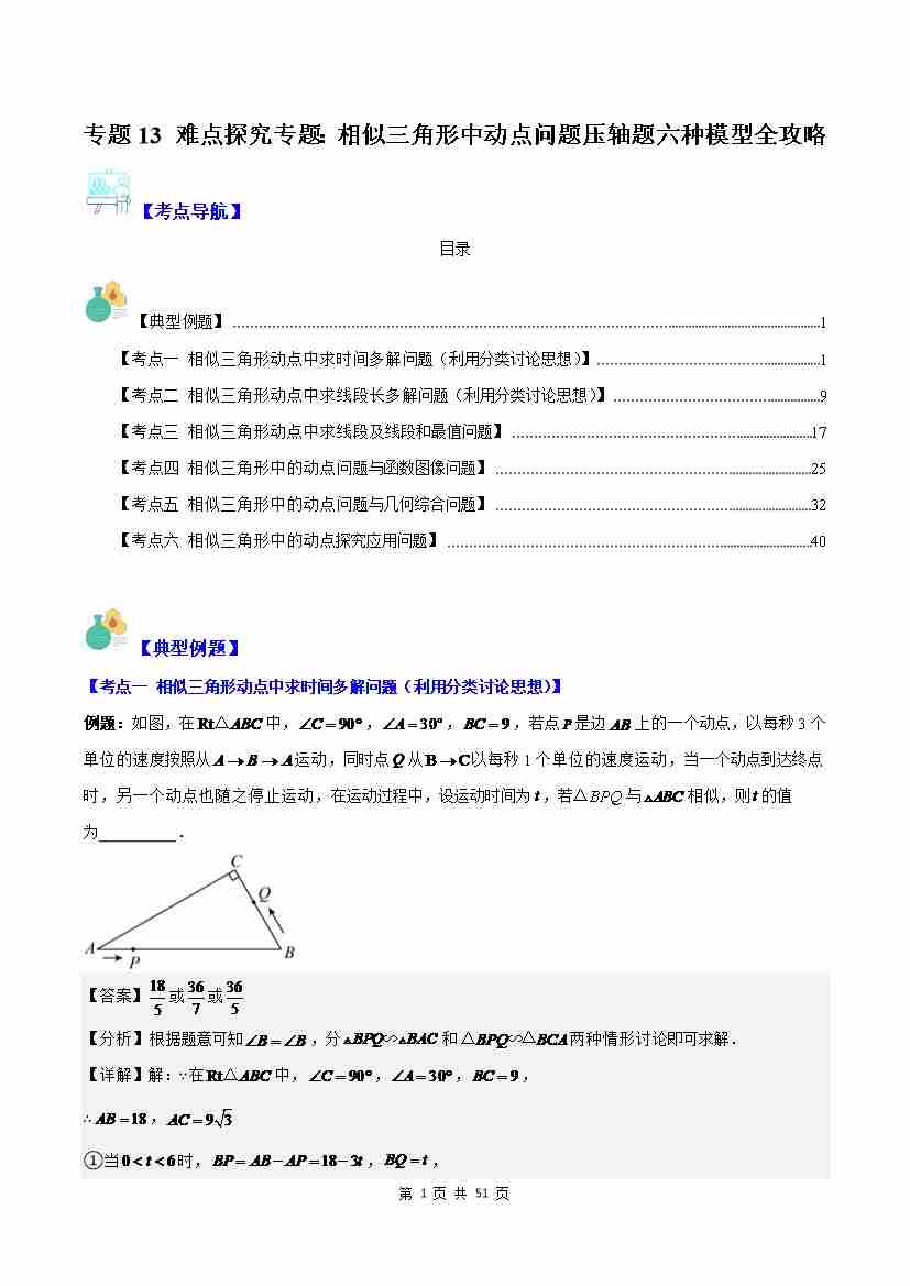 专题13 难点探究专题:相似三角形中动点问题压轴题六种模型全攻略(解析版)