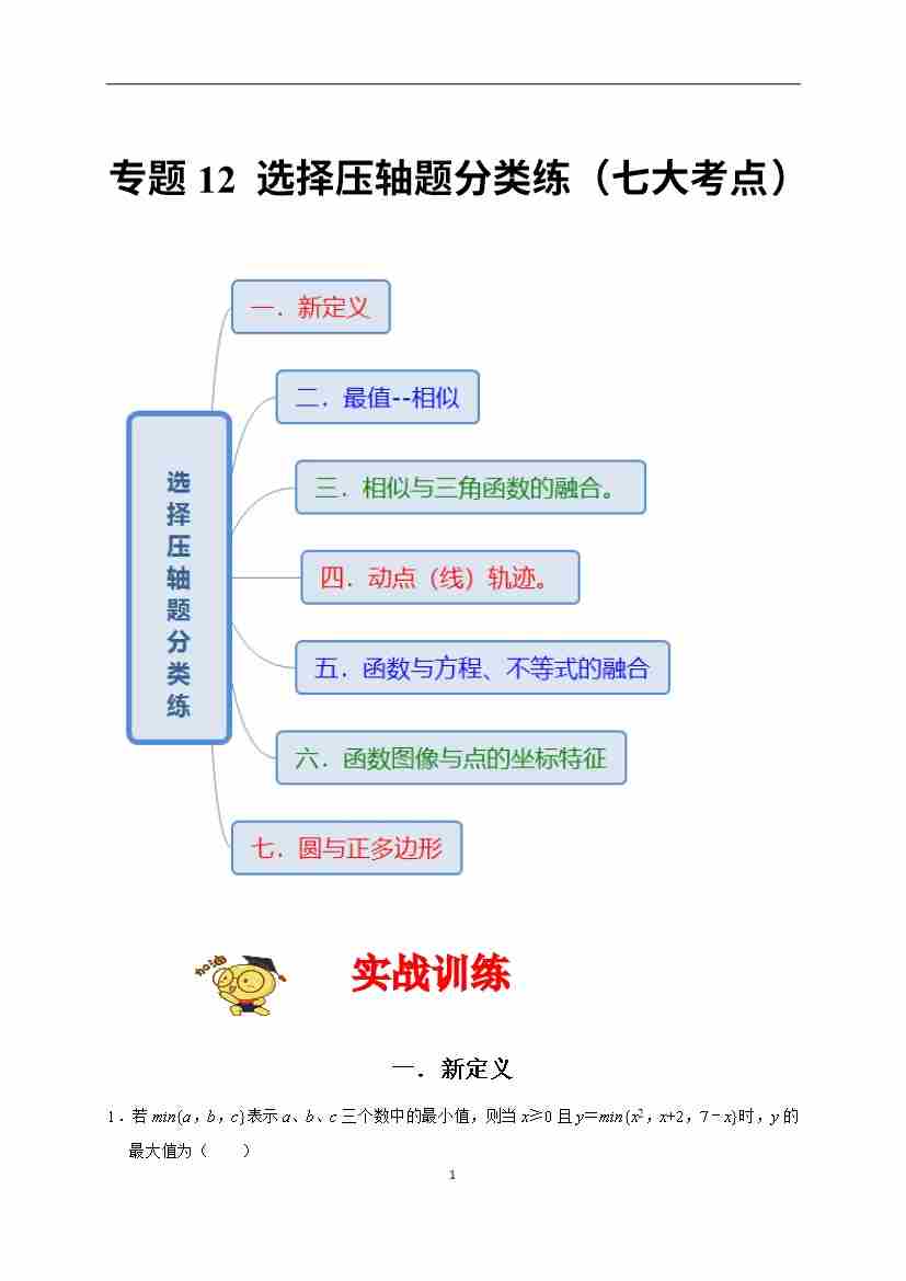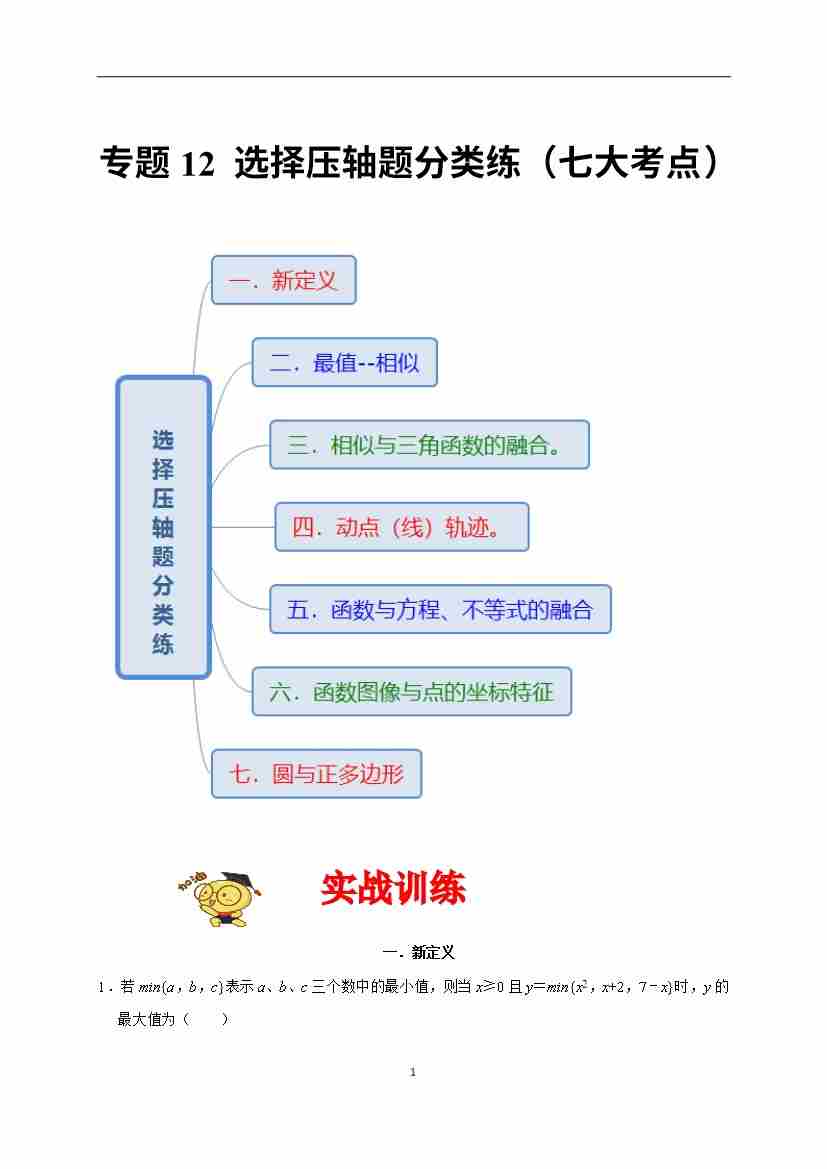 专题12 选择压轴题分类练(七大考点)(原卷版)