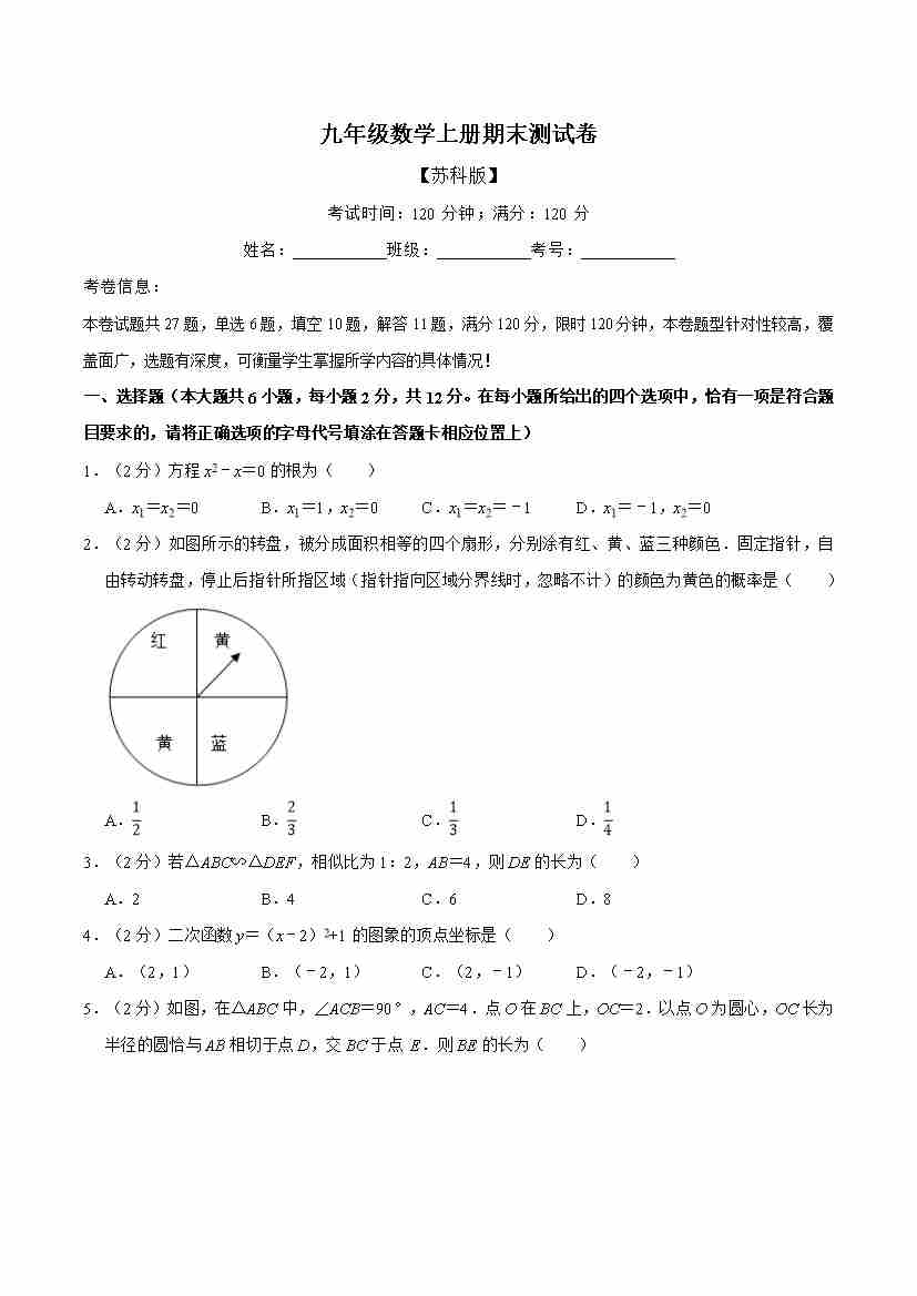期末测试卷(满分120分制)(举一反三)(苏科版)(原卷版)