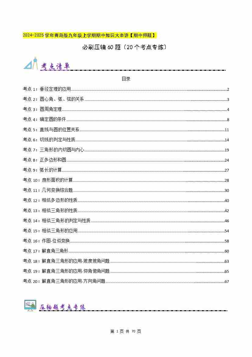 清单03 对圆的进一步认识(考点清单,知识导图+19个考点清单&题型解读)(原卷版)--