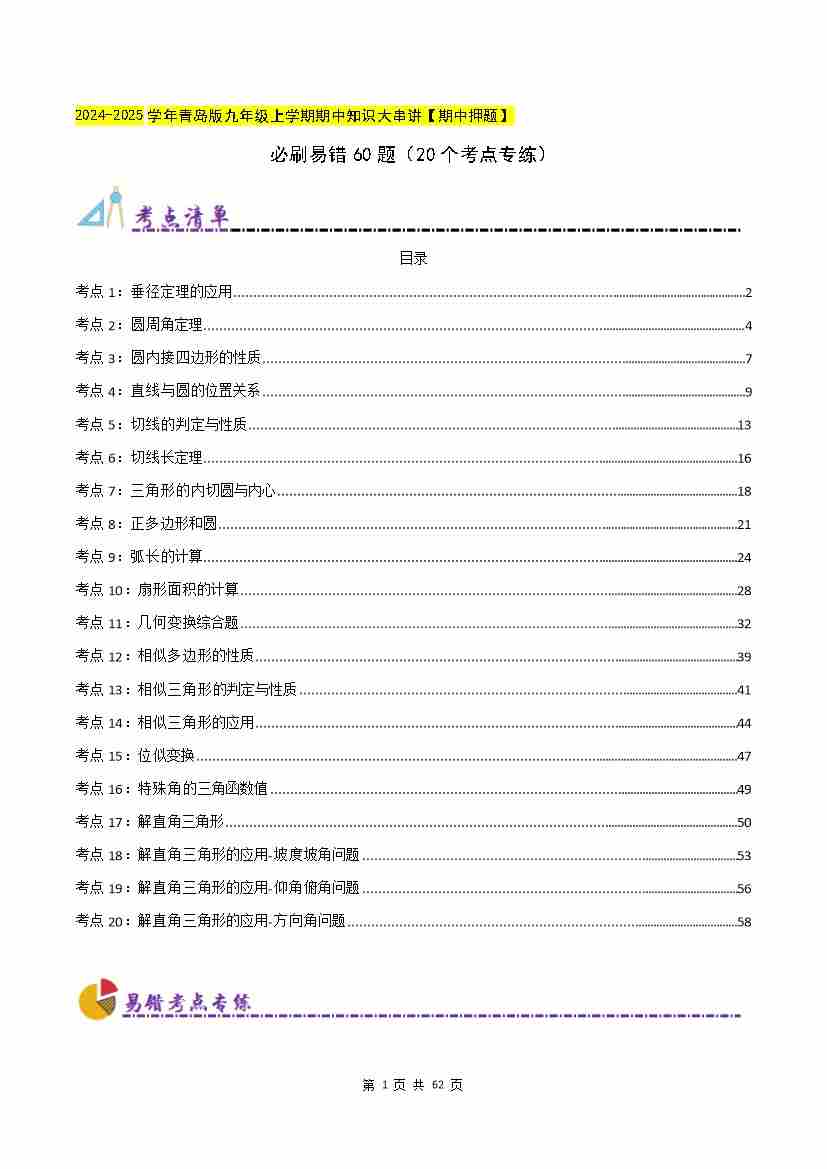 必刷易错60题(20个考点专练)(原卷版)--