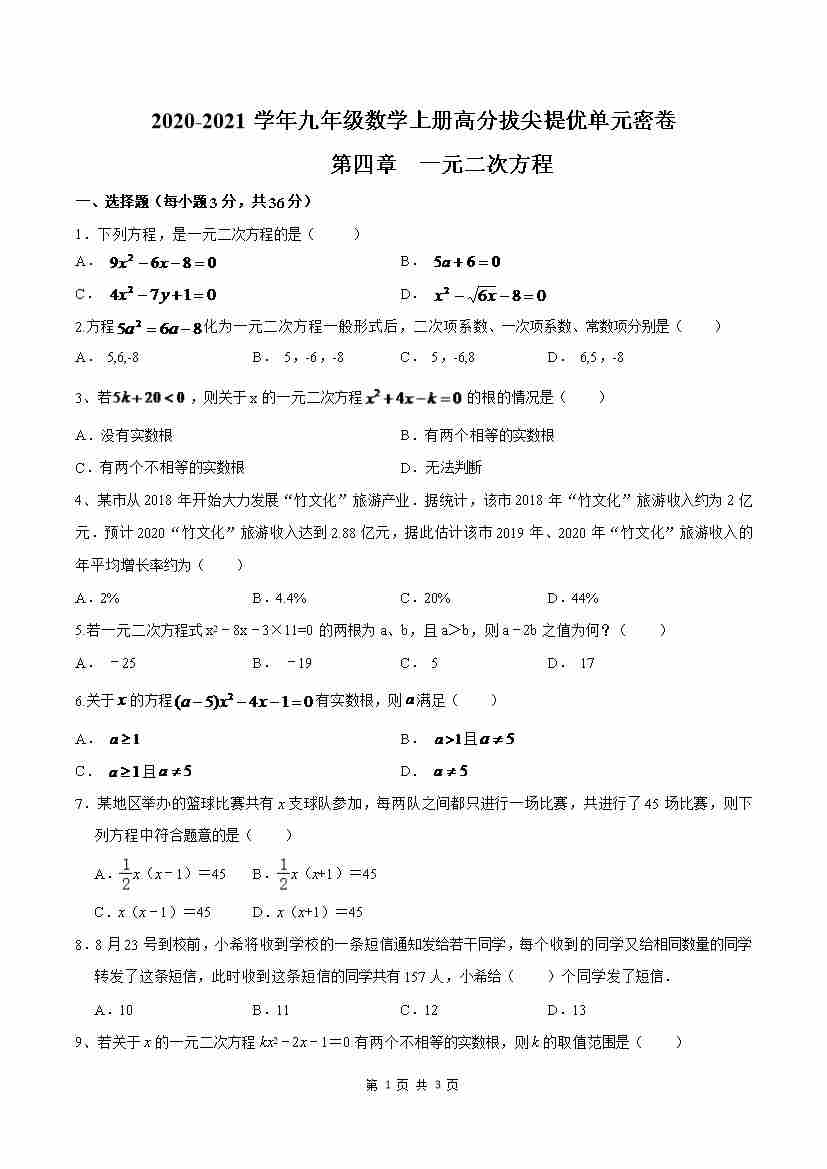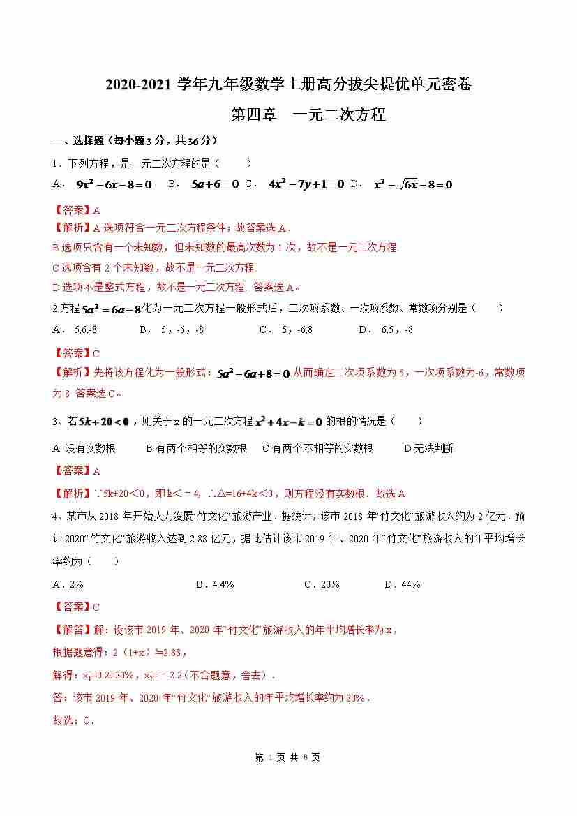第4章 一元二次方程(解析版)
