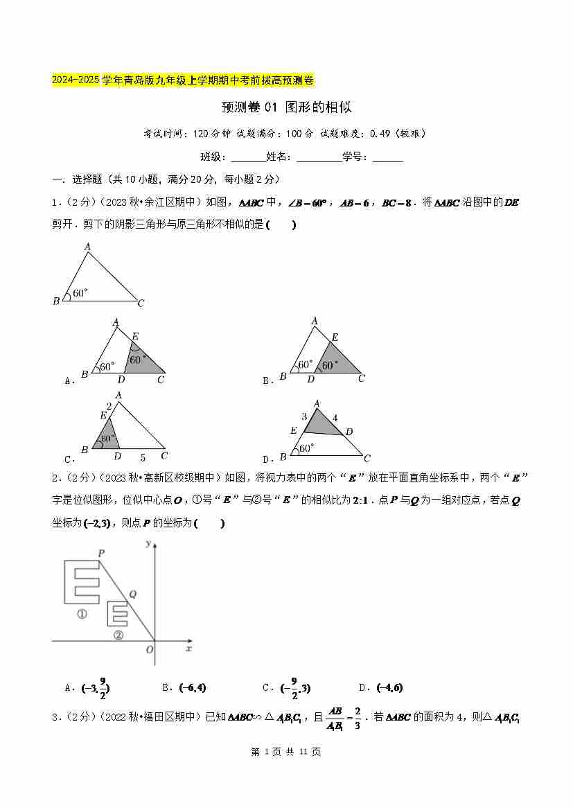 预测卷01 图形的相似(原卷版)--