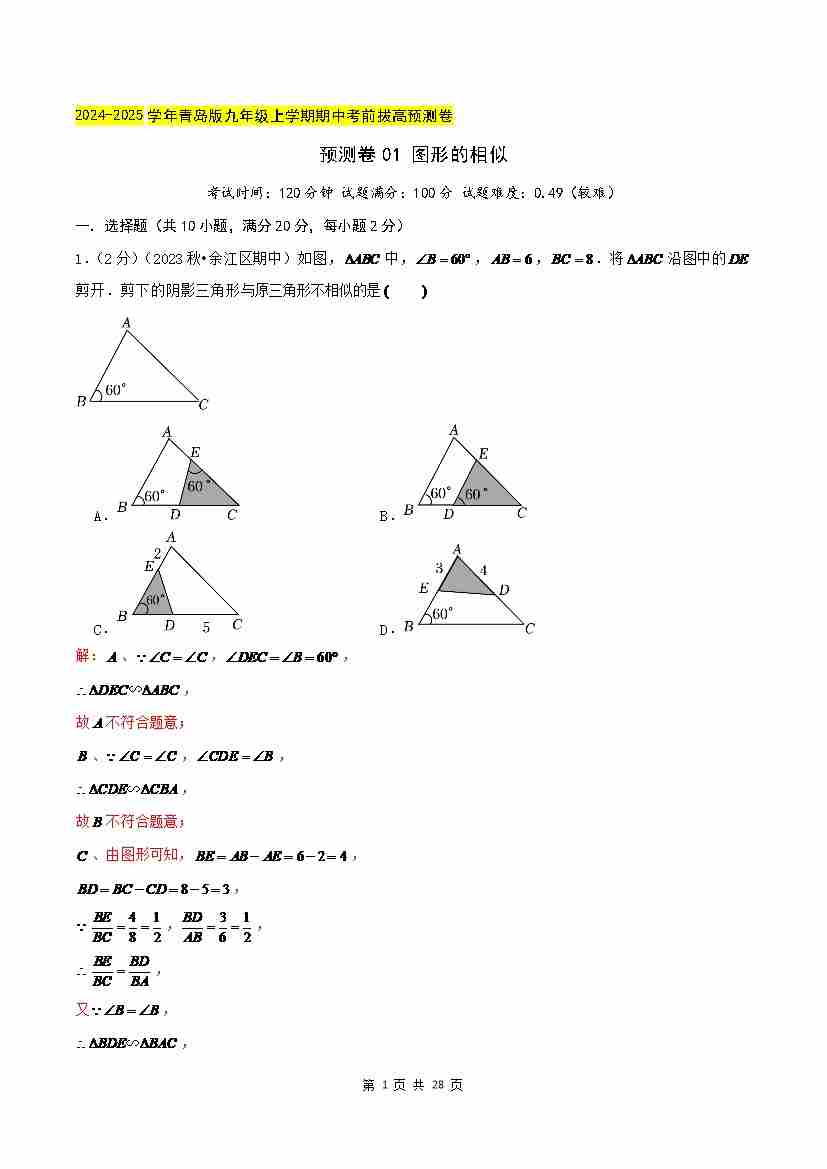 预测卷01 图形的相似(解析版)--