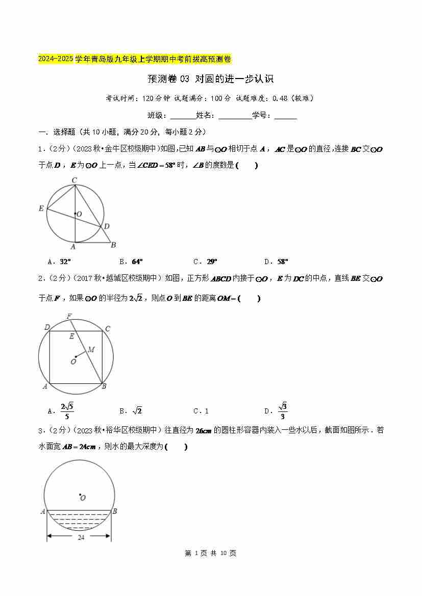 预测卷03 对圆的进一步认识(原卷版)--