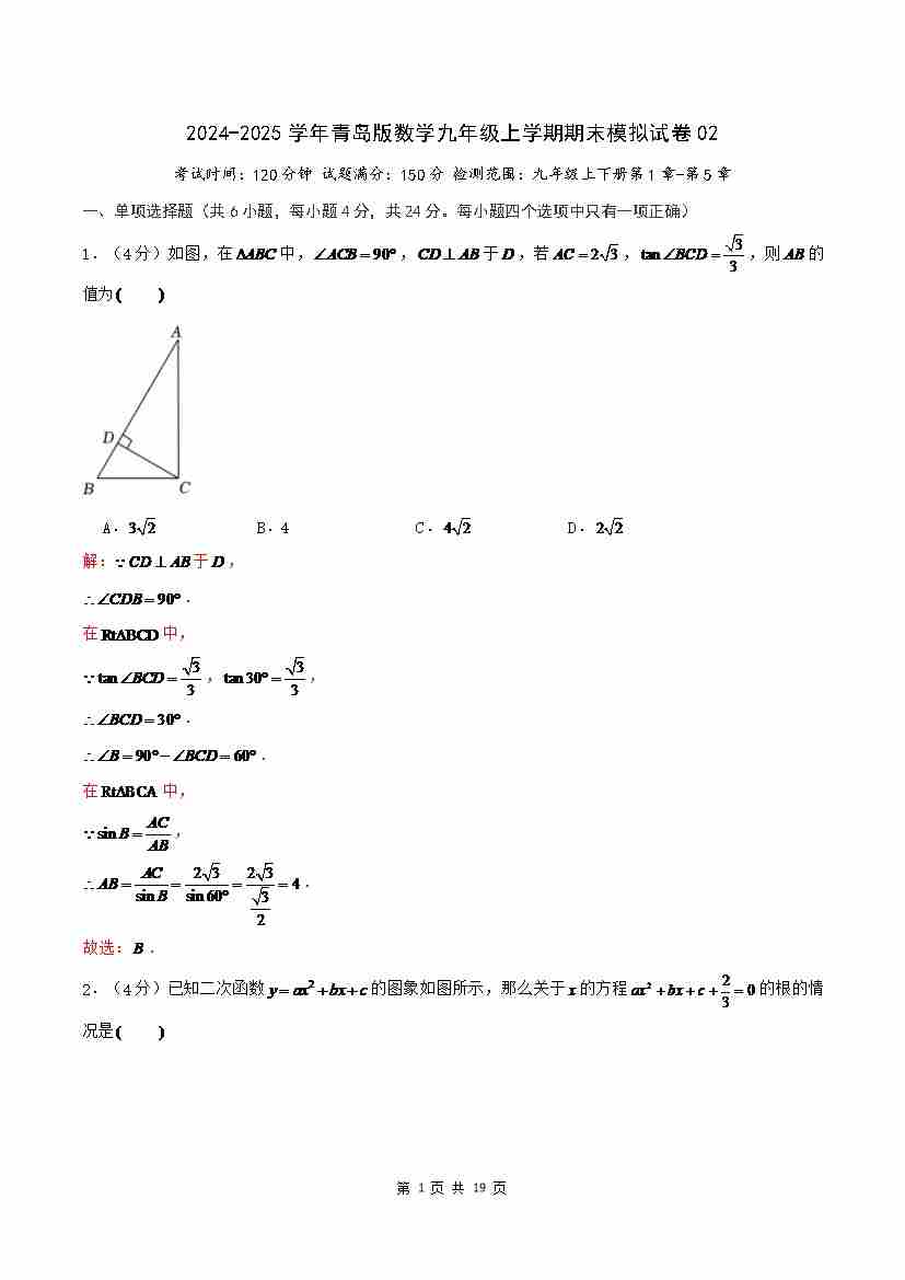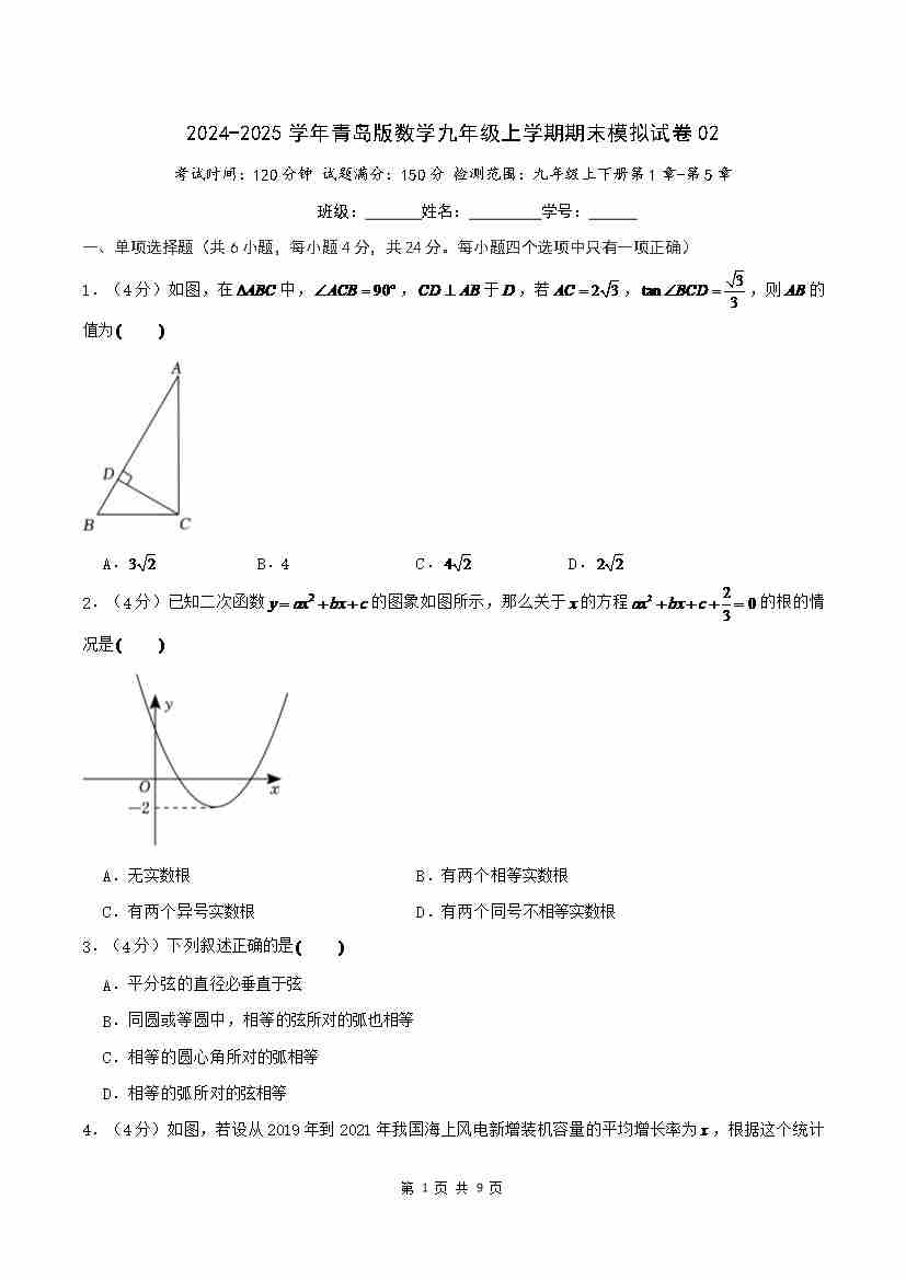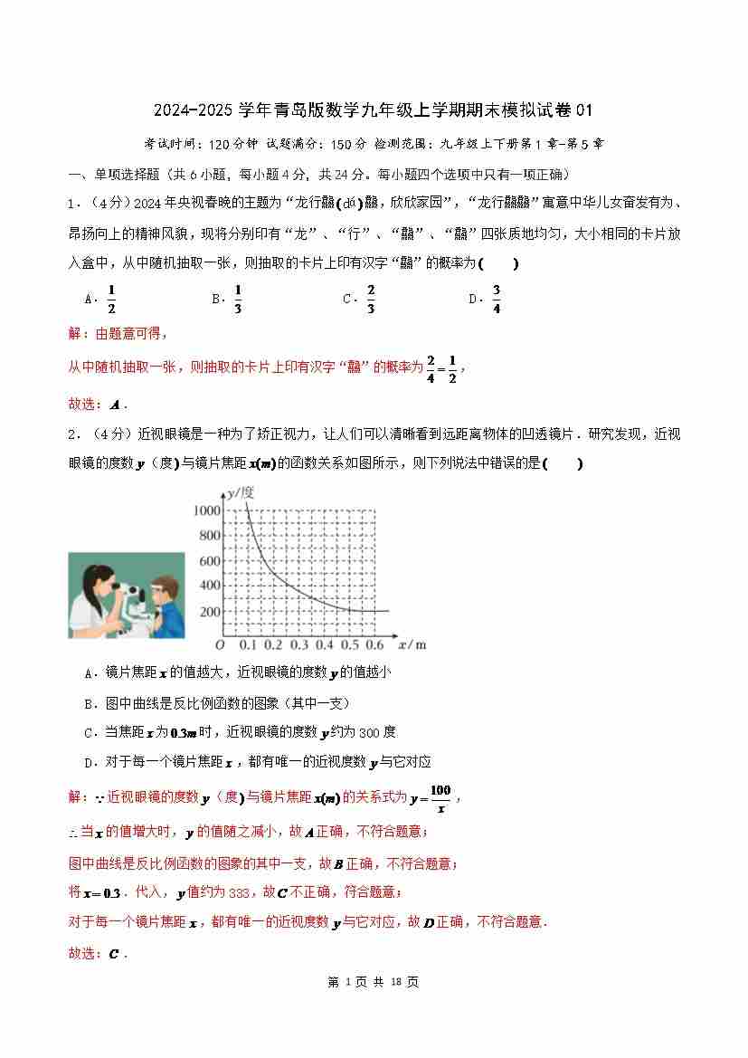 【青岛】9上数学第1次月考【第1-2章】(1)