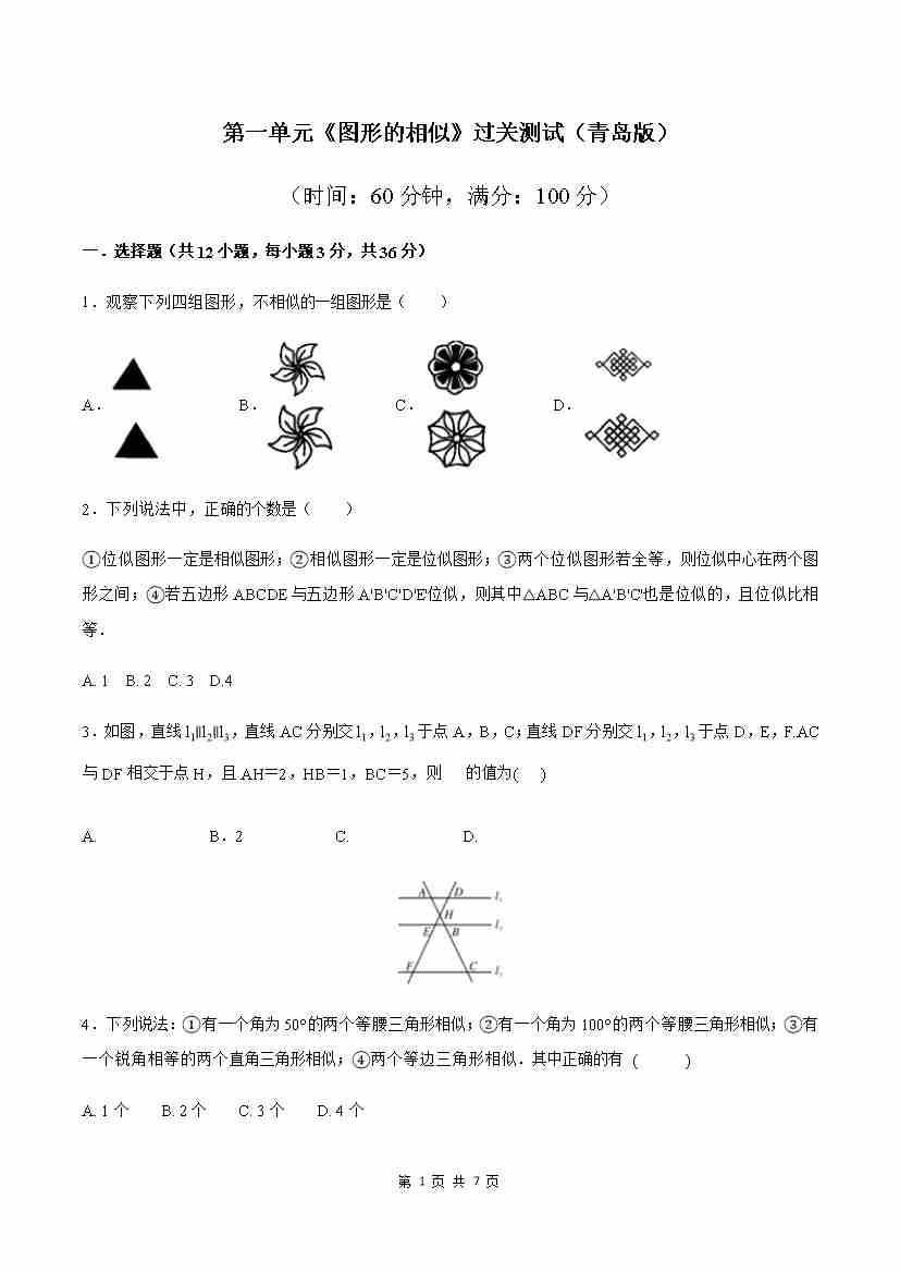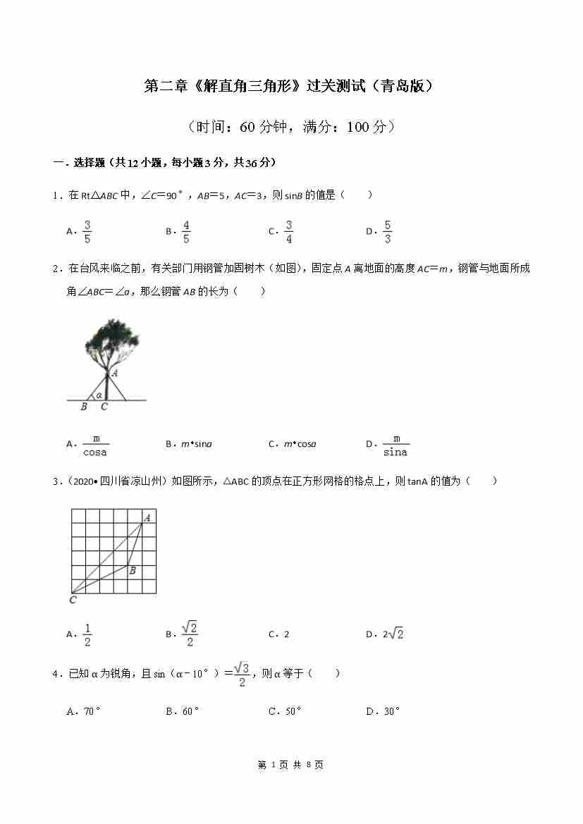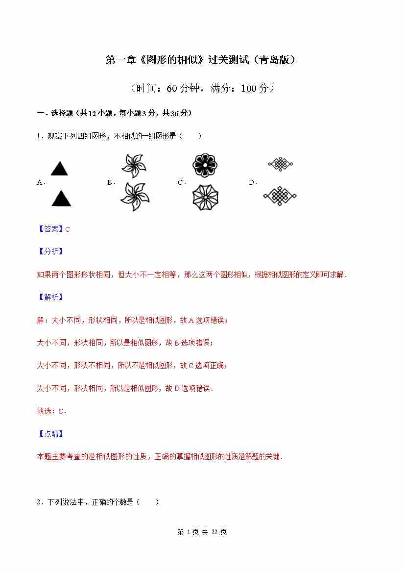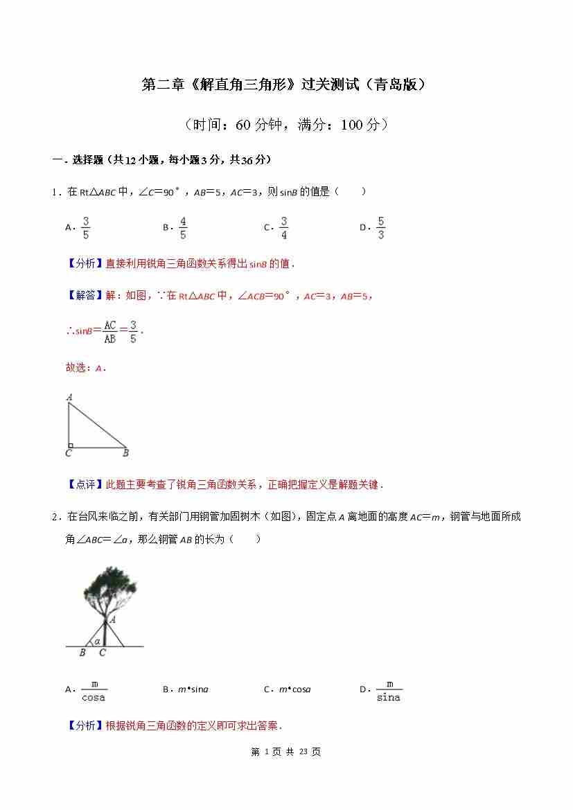 【青岛】9上数学第1次月考【第1-2章】(1)