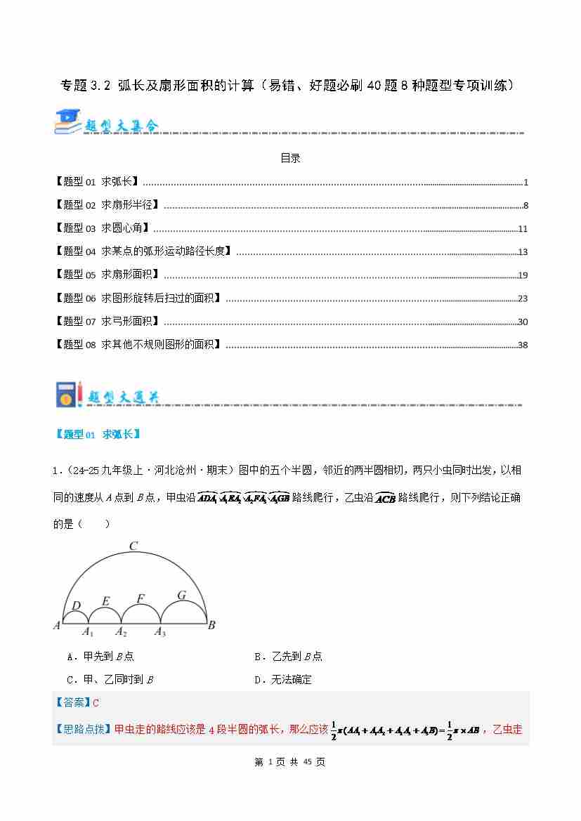 专题3.2 弧长及扇形面积的计算(考题猜想,易错,好题必刷40题8种题型)(解析版)