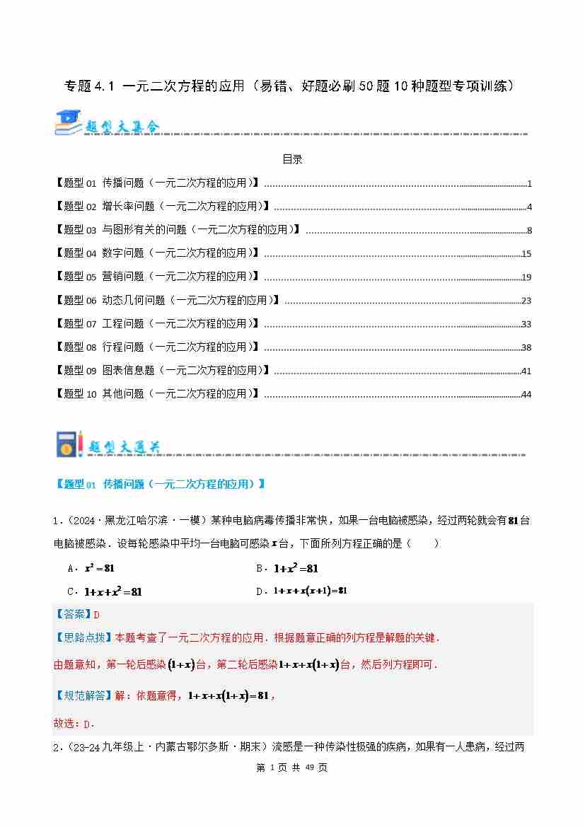 专题4.1 一元二次方程的应用(易错、好题必刷50题10种题型专项训练)(解析版)
