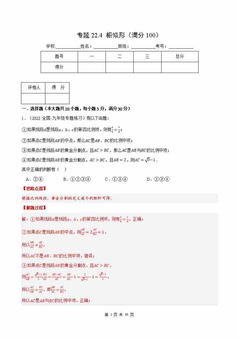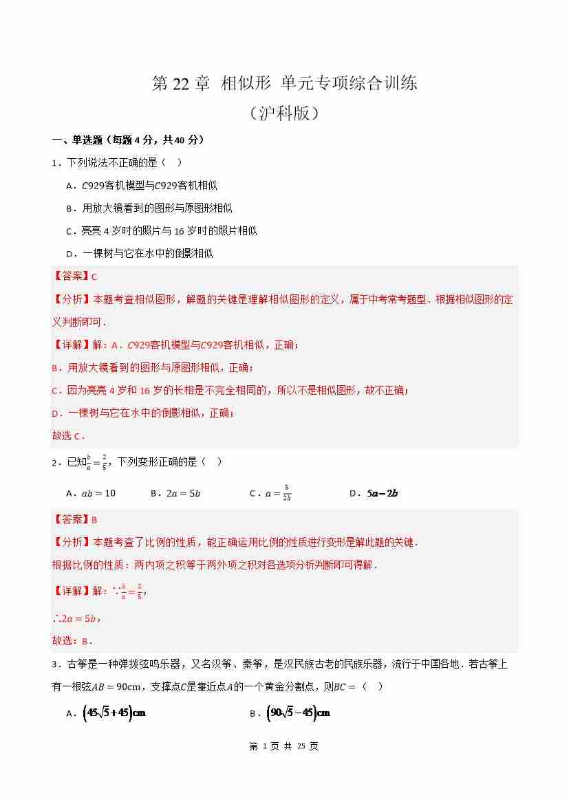 第22章 相似形 单元专项综合训练(解析版)