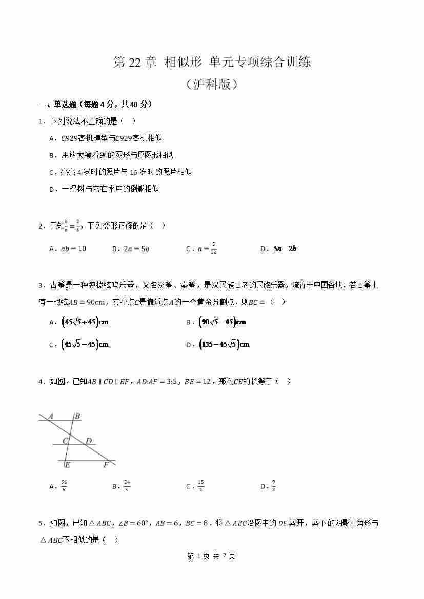 第22章 相似形 单元专项综合训练(原卷版)