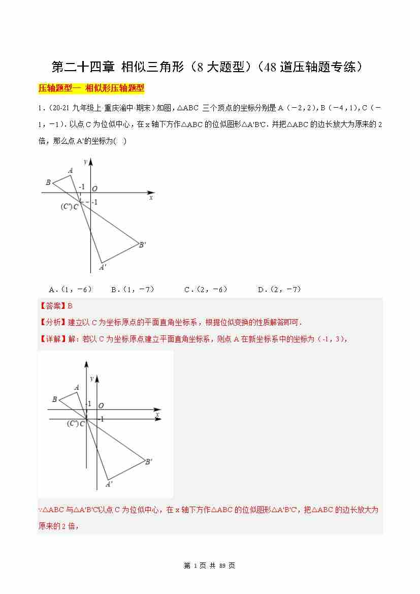 第24章 相似三角形(8大题型)(48道压轴题专练)(解析版)