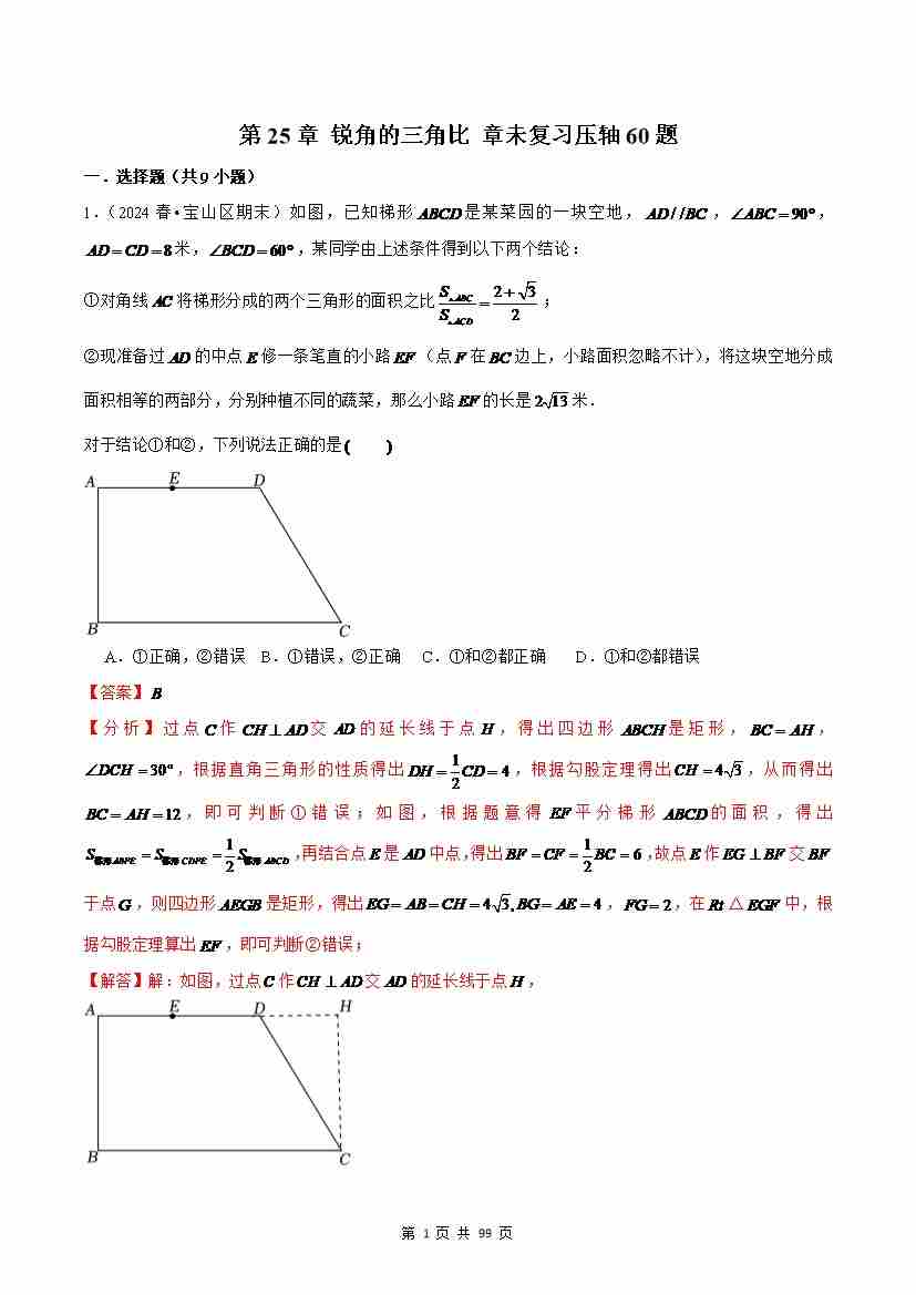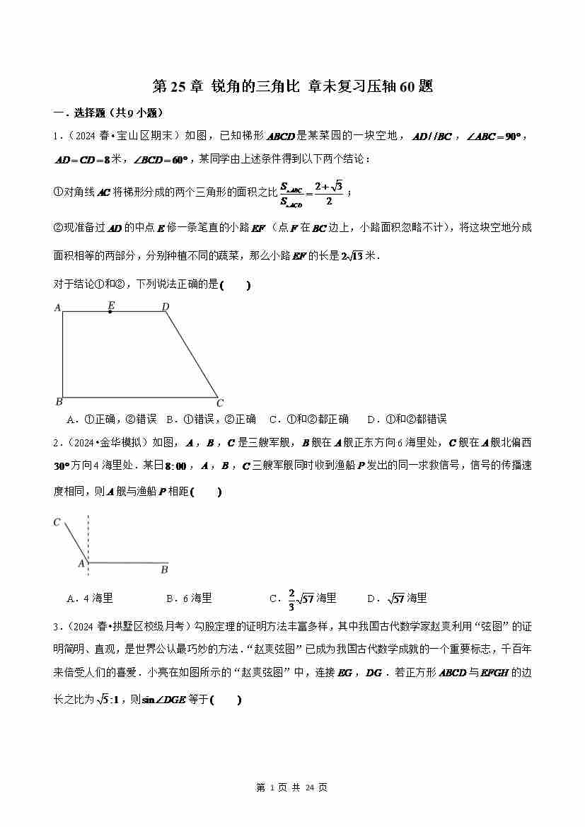 第25章 锐角的三角比 章未复习压轴60题(解析版)