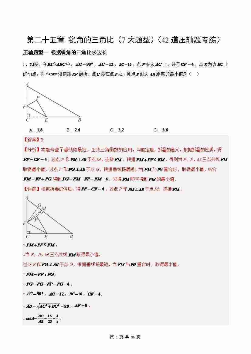 第25章 锐角的三角比(7大题型)(42道压轴题专练)(解析版)