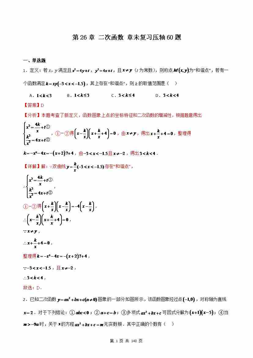 第26章 二次函数 章末复习压轴60题(解析版)