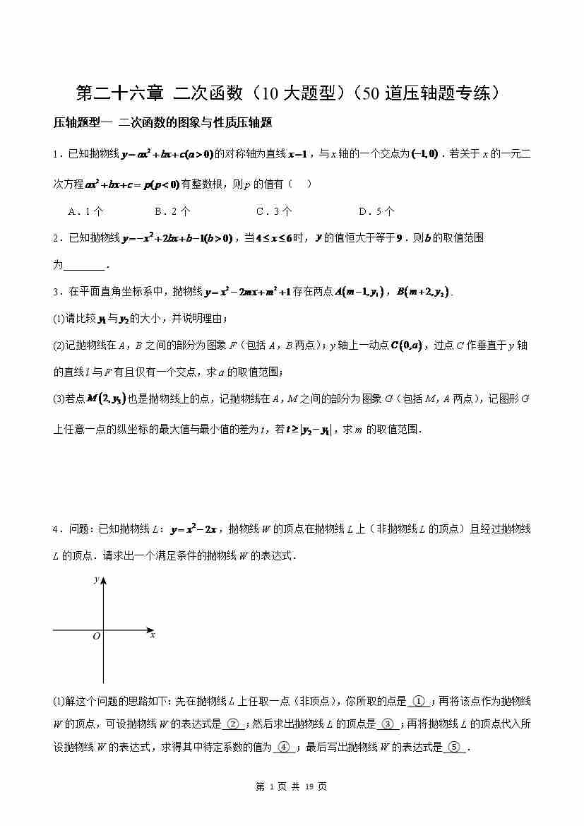 第26章 二次函数(10大题型)(50道压轴题专练)(原卷版)