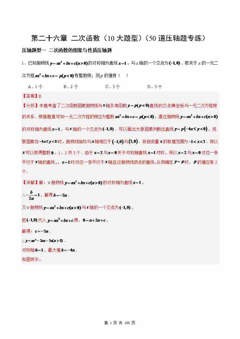 第26章 二次函数(10大题型)(50道压轴题专练)(解析版)