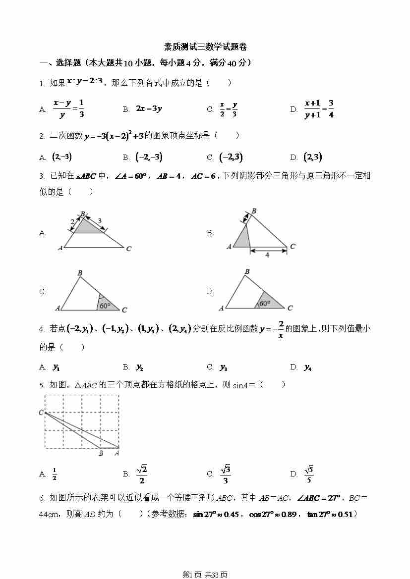 九年级数学第三次月考卷(考试版A4)