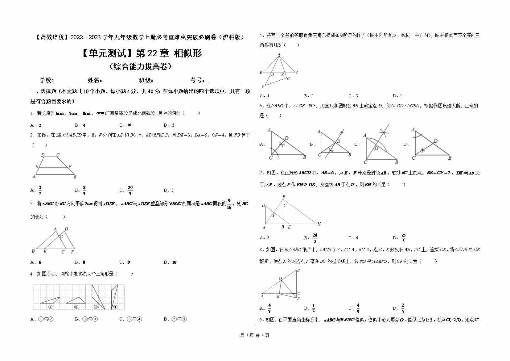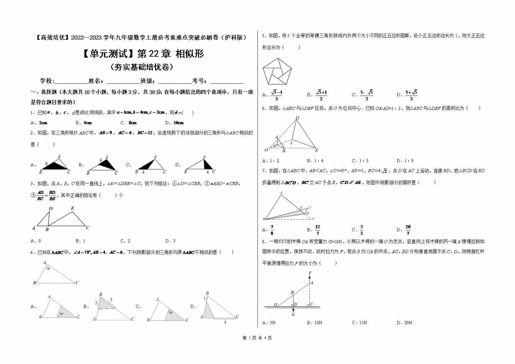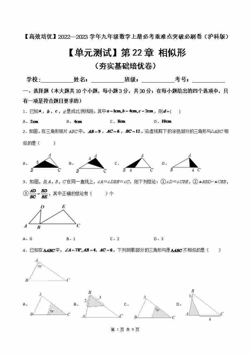 第22章 相似形(夯实基础培优卷)(原卷版)