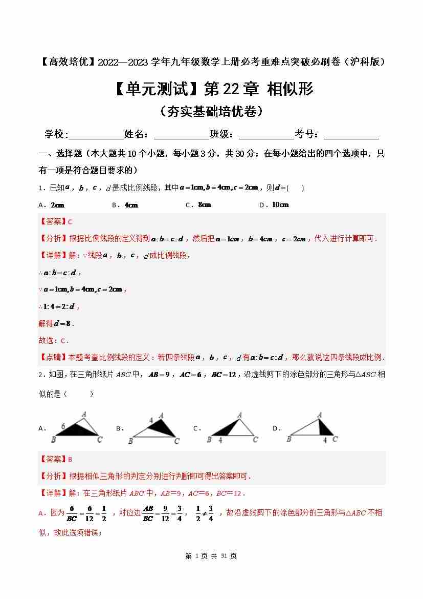 第22章 相似形(夯实基础培优卷)(解析版)