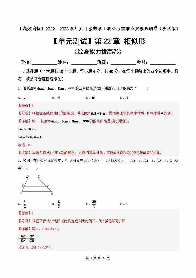 第22章 相似形(综合能力拔高卷)(解析版)