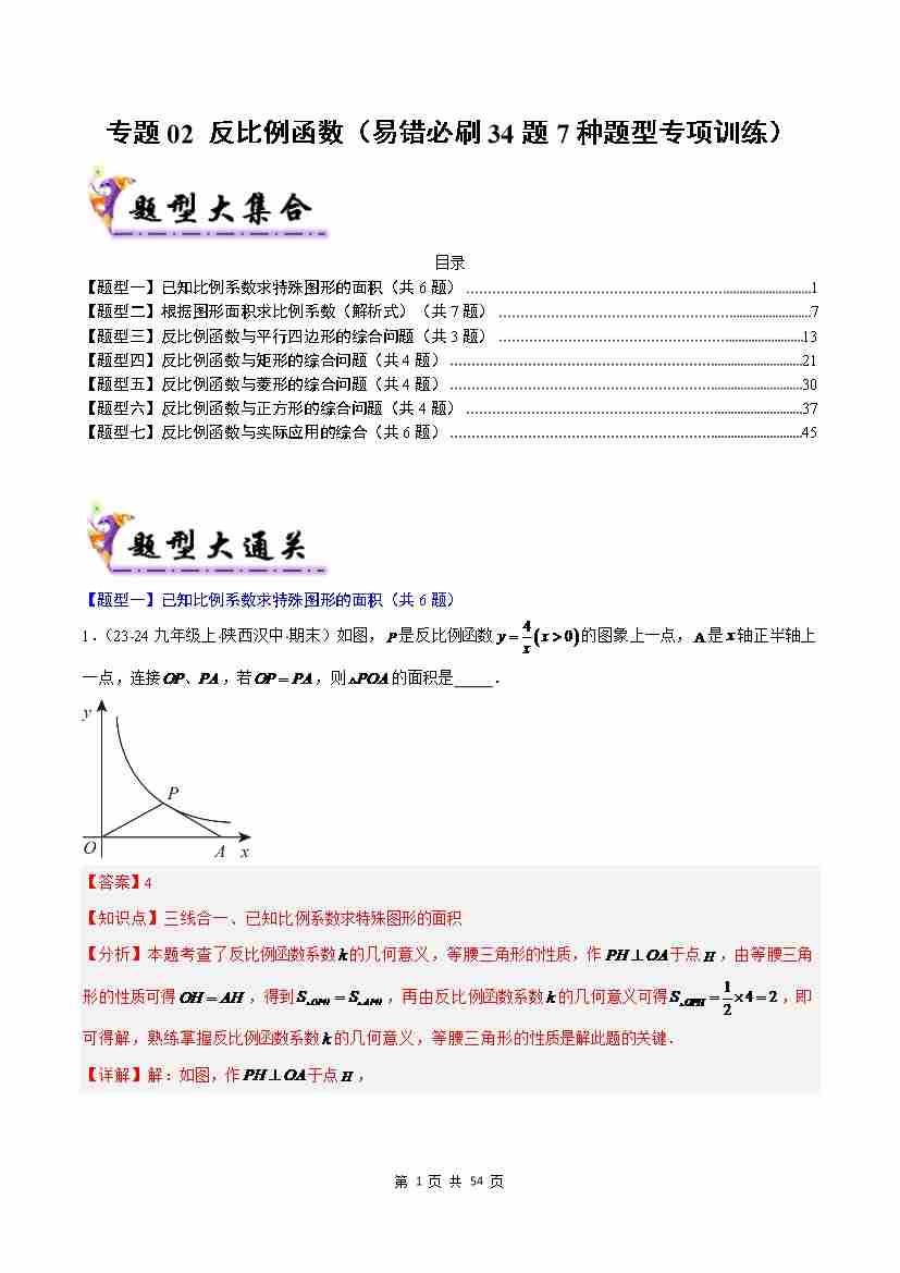 专题02 反比例函数(考题猜想,易错必刷34题7种题型)(解析版)