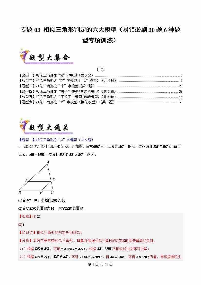 专题03 相似三角形判定的六大模型(考题猜想,易错必刷30题6种题型)(解析版)