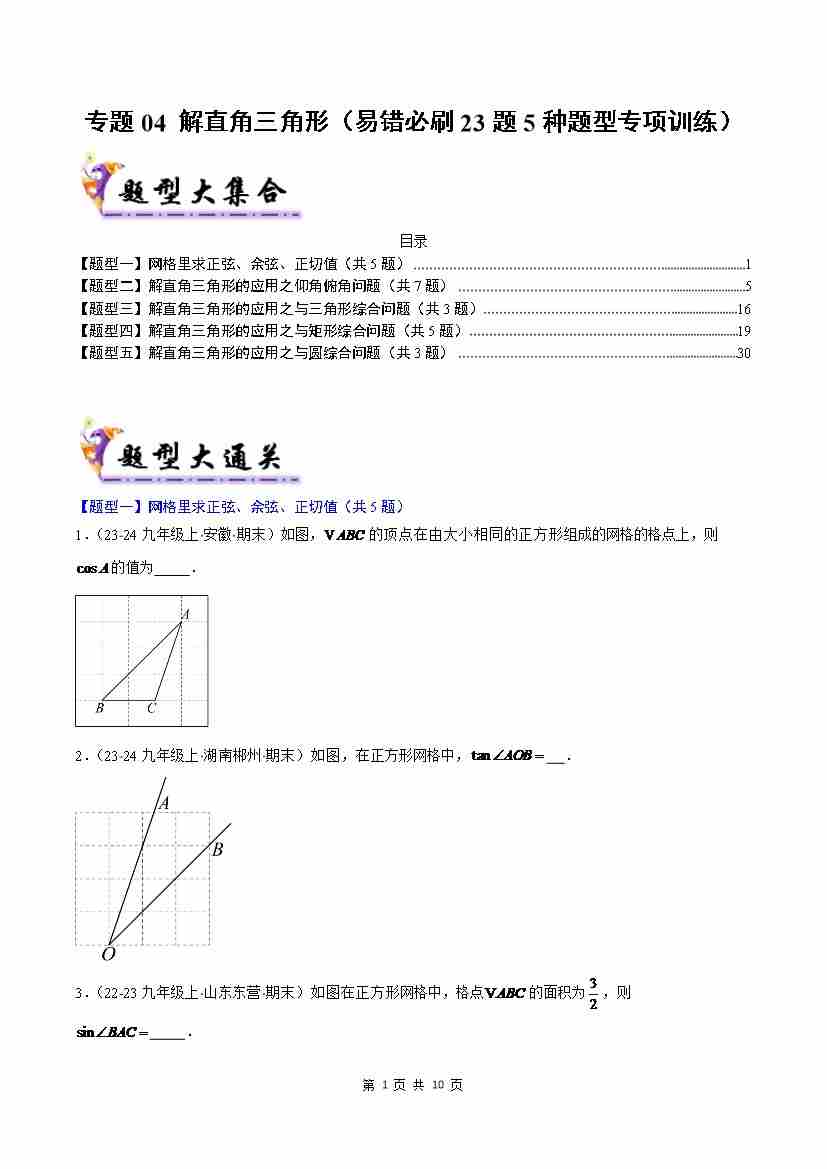 专题04 解直角三角形(考题猜想,易错必刷23题5种题型)(原卷版)