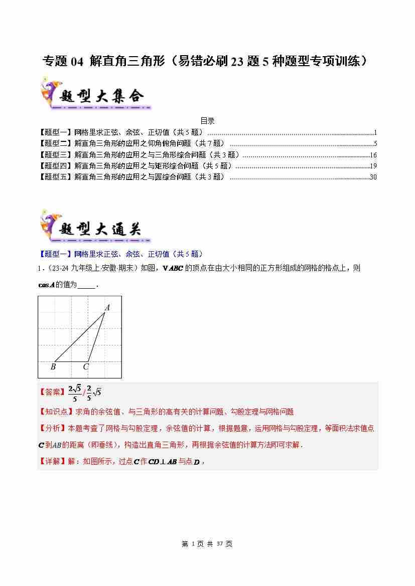 专题04 解直角三角形(考题猜想,易错必刷23题5种题型)(解析版)