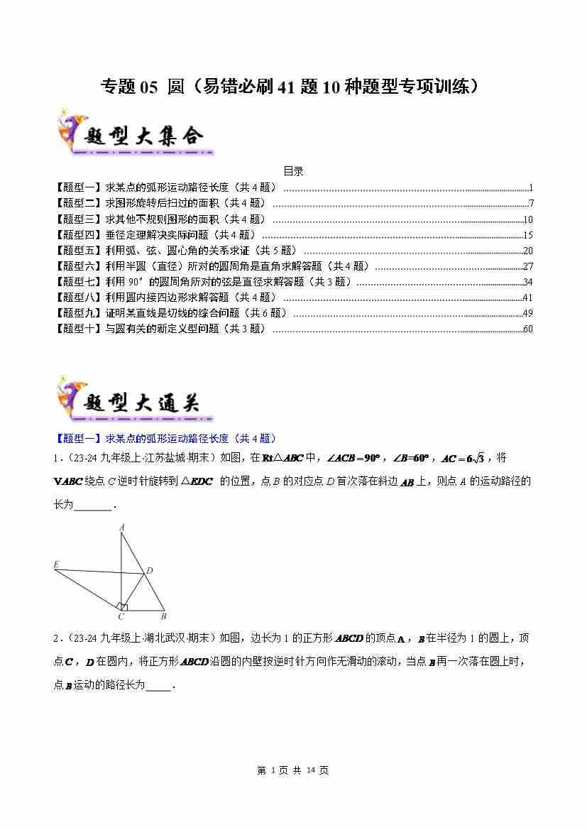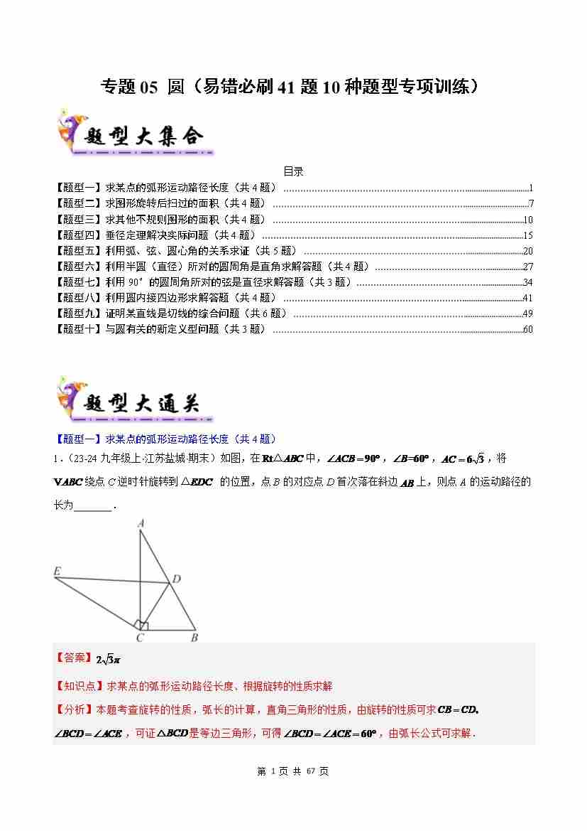 专题05 圆(考题猜想,易错必刷41题10种题型)(解析版)