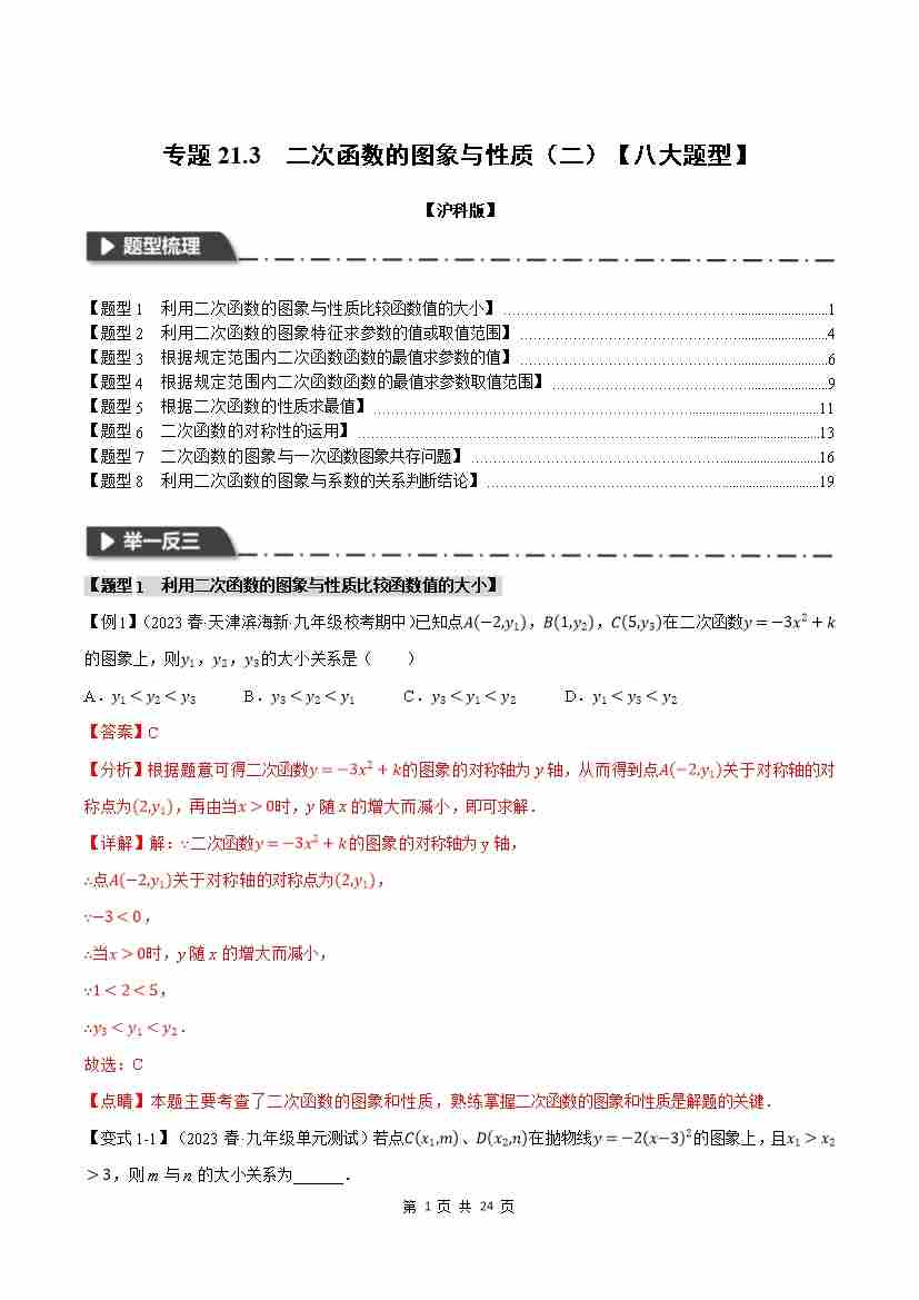 专题21.3 二次函数的图象与性质(二)【八大题型】(举一反三)(人教版)(解析版)