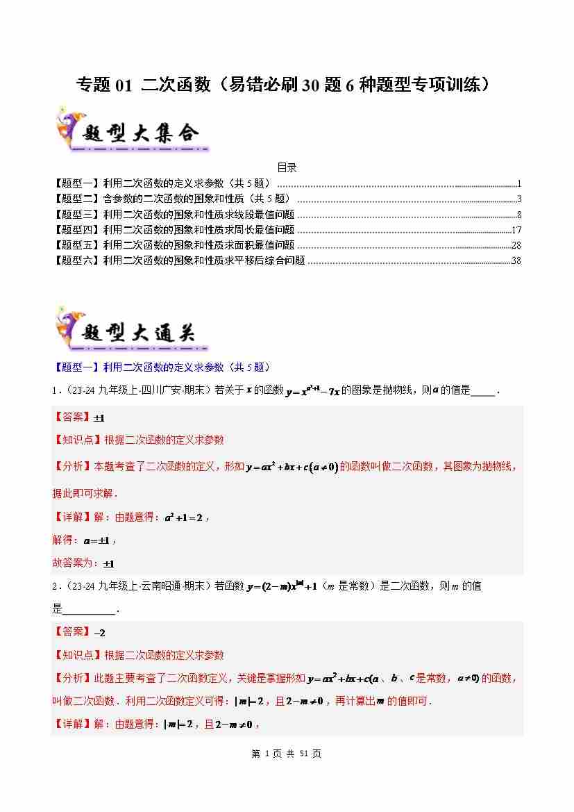 专题01 二次函数(考题猜想,易错必刷30题6种题型)(解析版)